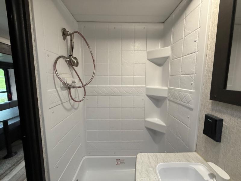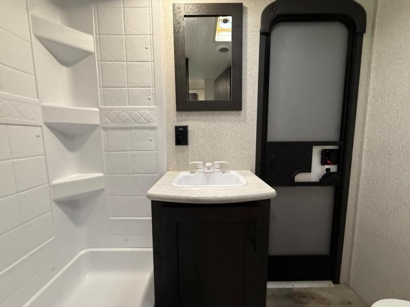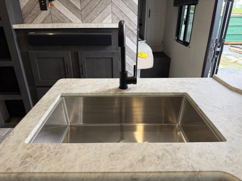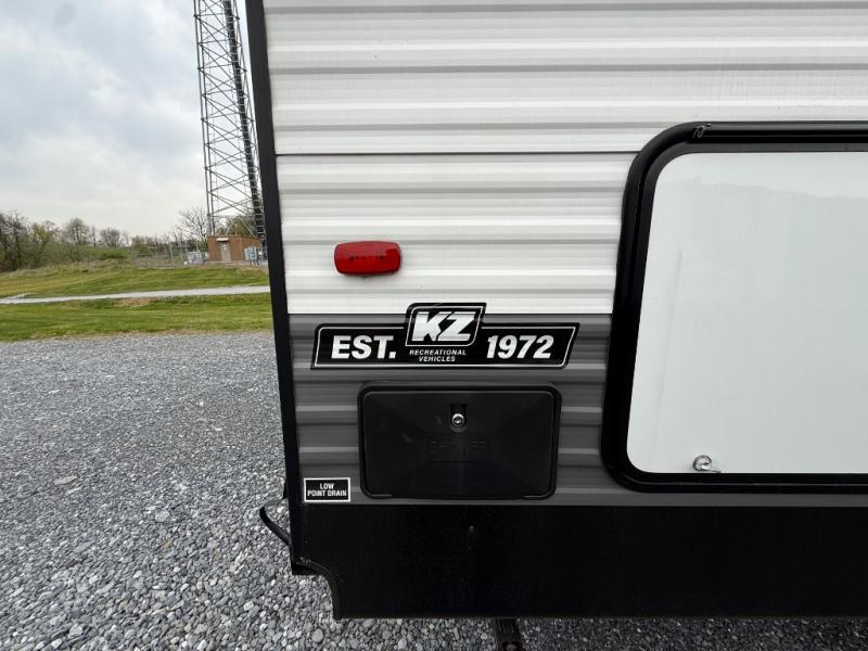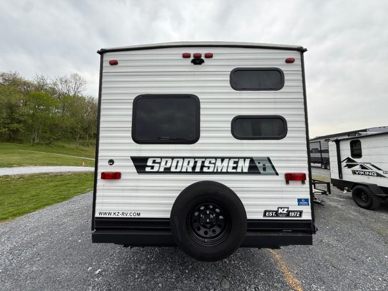 Each Sportsmen SE travel trailer and toy hauler by KZ is constructed with KZ exclusive tough shield exterior metal, one-piece seamless walk-on Tufflex roofing material, and a fully enclosed, insulated, and heated underbelly. You will appreciate the RV Airflow System that optimizes the airflow in your A/C system for a more evenly and quietly-cooled trailer. Some of the exterior conveniences you'll find are the four stabilizer jacks, nitrogen-filled tires, an exterior shower, and a Leash Latch with a bonus beverage opener. You'll feel right at home with residential-grade linoleum, a black residential kitchen faucet, large overhead cabinets, a shower surround, and much more!