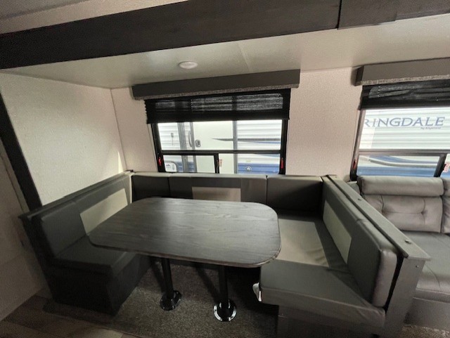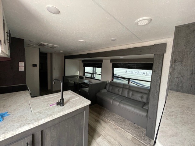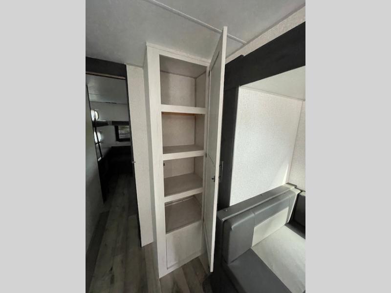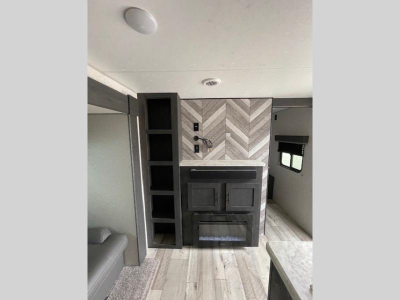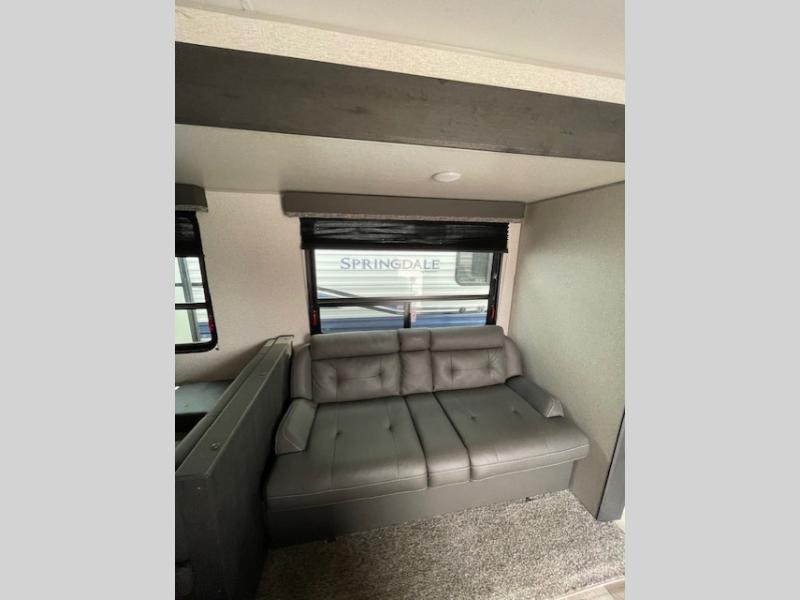 If you've been looking for a travel trailer with plenty of space for your family or group of friends, look no further than this one! The private bunkhouse includes two bunks, plus a third bunk across the room and a jiffy sofa below. There is also a bench seat here, and the full bath is close by for convenience. Everyone can gather in the main living area at the 80" U-shaped dinette, and there is a 64" sofa here for more seating space. If the weather is nice, head outdoors to relax under the 20' power awning with LED lights as the cook prepares dinner on the outside griddle!