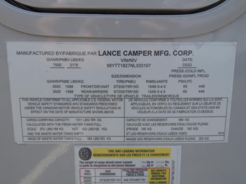 Used 2022 Lance Lance Travel Trailers 1985 Travel Trailer