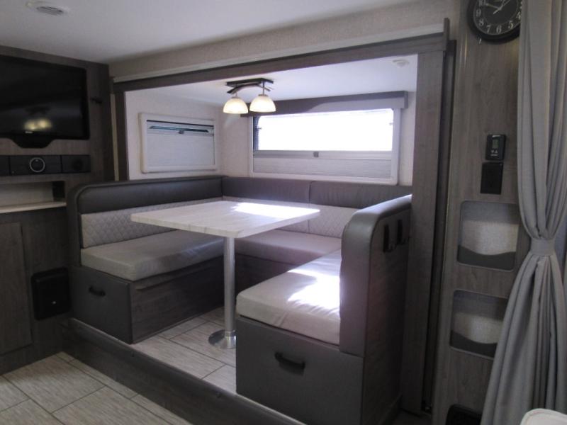 Whether you're a mountain hiker, beach bum, in-town shopper, or early morning fisherman, this Lance travel trailer is for you! A full rear bathroom adds privacy as you get ready in the morning, and the deluxe queen pillowtop innerspring mattress with a bedspread and two LED reading lights is at the other end of the trailer. This bed can be sectioned off by drawing the privacy curtain, and the U-shaped dinette will provide sleeping accommodations for two more people. If you prefer, you can even change out the bed for the optional convertible sofa bed. Each person will benefit from a hot meal prepared in the kitchen on the stainless steel three-burner range with 21" oven or in the stainless steel microwave.