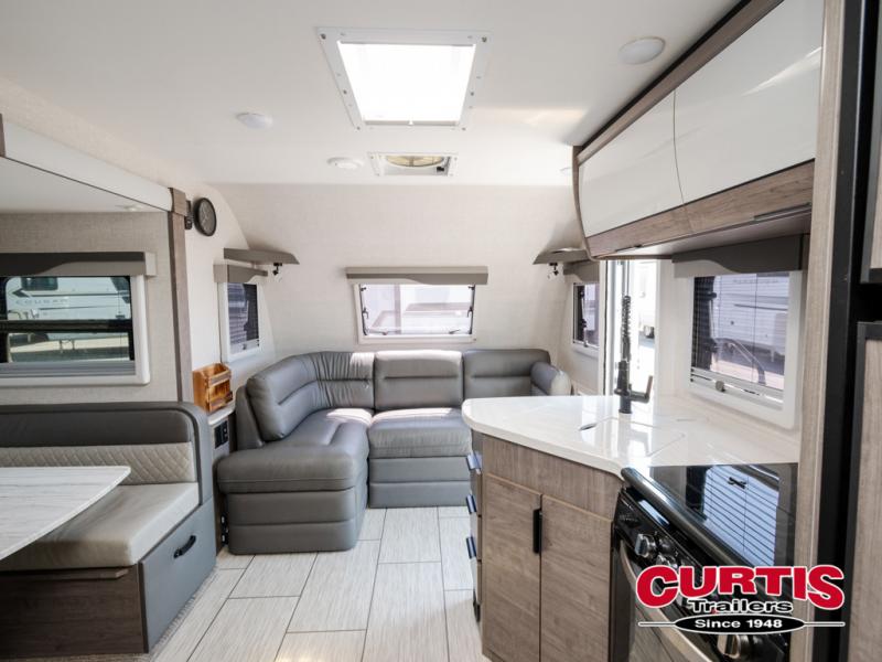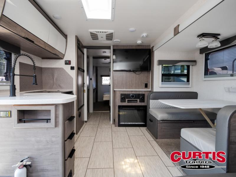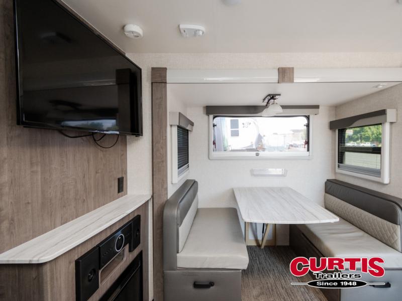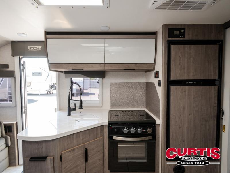 This Lance travel trailer has the best bedroom out of the entire brand! Not only do you have a private bedroom at the back of the trailer with a slide out for more walking space, but you also have a king-size bed just waiting for you to enjoy its comfort. Another comfortable feature found on this trailer is the front 42" x 72" sofa bed. Added to the booth dinette and king-size bed, this sofa helps this trailer sleep five people during every getaway. You'll also be quite excited to find two smart LCD TVs that you can use to watch movies, and you can even add an optional 40" smart LCD TV to the bedroom.
