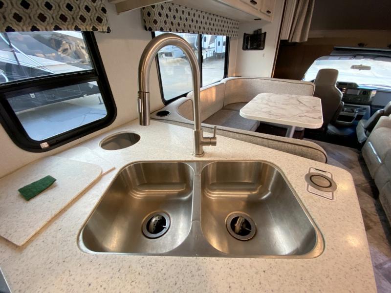 Forget about the way that you used to travel and begin traveling like a pro with this Ford Passage Class B gas motorhome! This coach has it all! You will find a wet bath with a retractable clothes line for staying clean, a rear power folding sofa bed for getting a full night of rest, a galley kitchen with an induction cooktop and convection microwave for preparing easy meals, and an LED HDTV for entertaining yourself after a long day of traveling. Plus, some of the other additions that are sure to make your life easier are the pull-out pantry, the cab swivel seats, the FanTastic roof fan with remote, and the removable Lagun table.