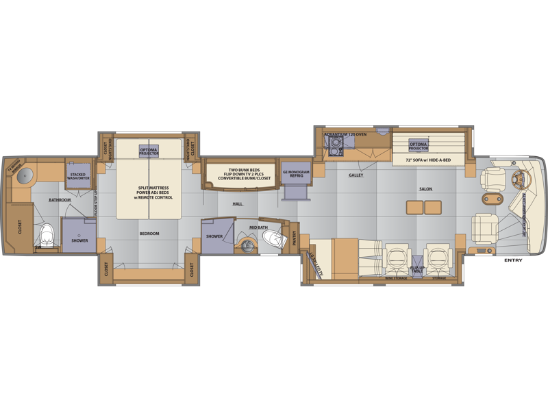 45' - Quad Slide Newell Coach with Front Entry Door with Bunk Beds and Two Full Bathrooms