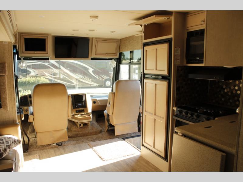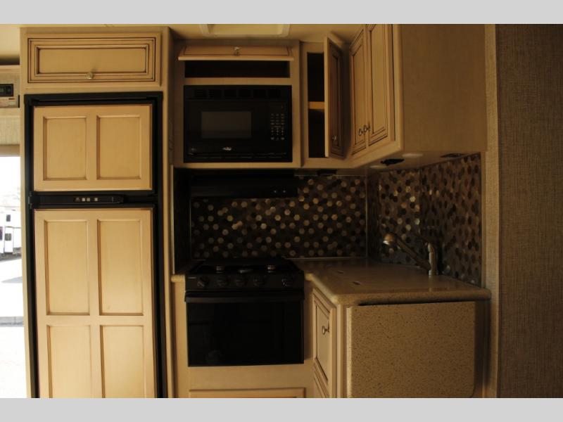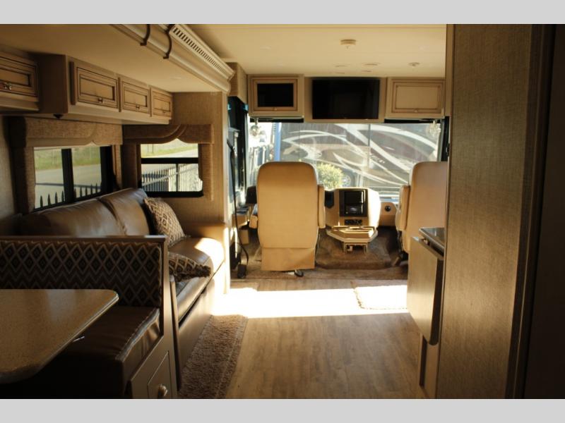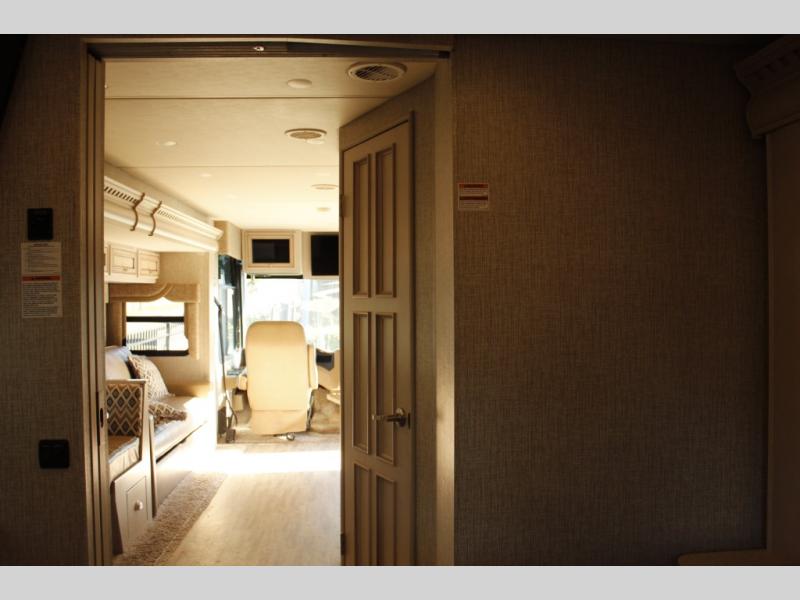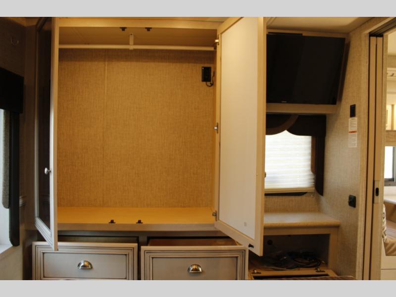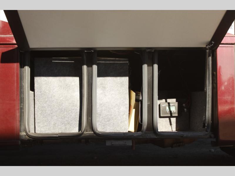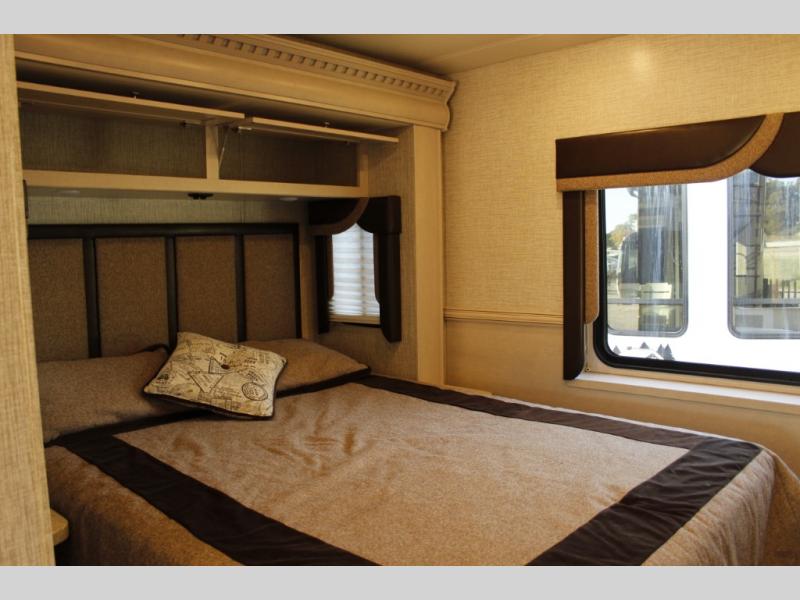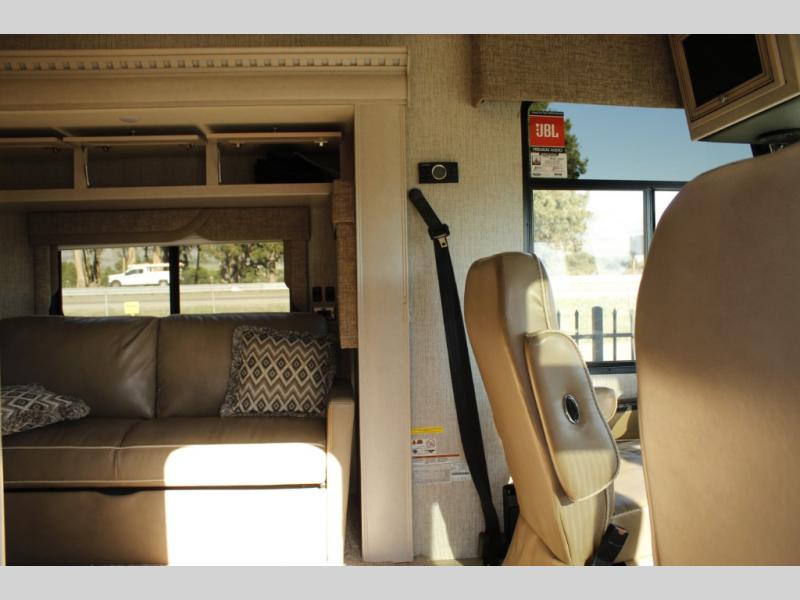 This cozy motorhome can sleep five people each night, so invite your friends along for a weekend by the lake. They can sleep on the comfort lounge sofa and booth dinette, while you take the slide out queen bed in the rear private bedroom. If you're needing more sleeping space, just add the optional drop-down overhead bunk! The full bath includes a shower skylight for added light and space and ABS shower surround, and the bedroom includes a shirt wardrobe, plus a 32" bedroom TV to watch a show in bed!