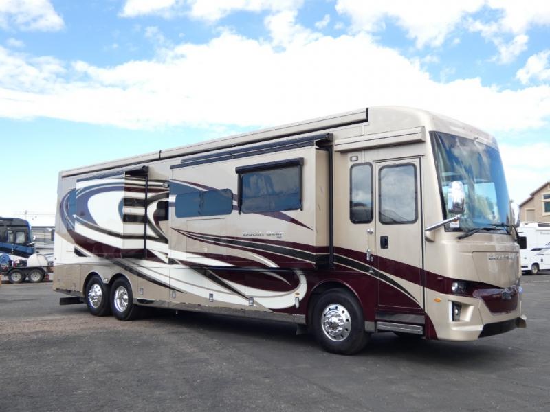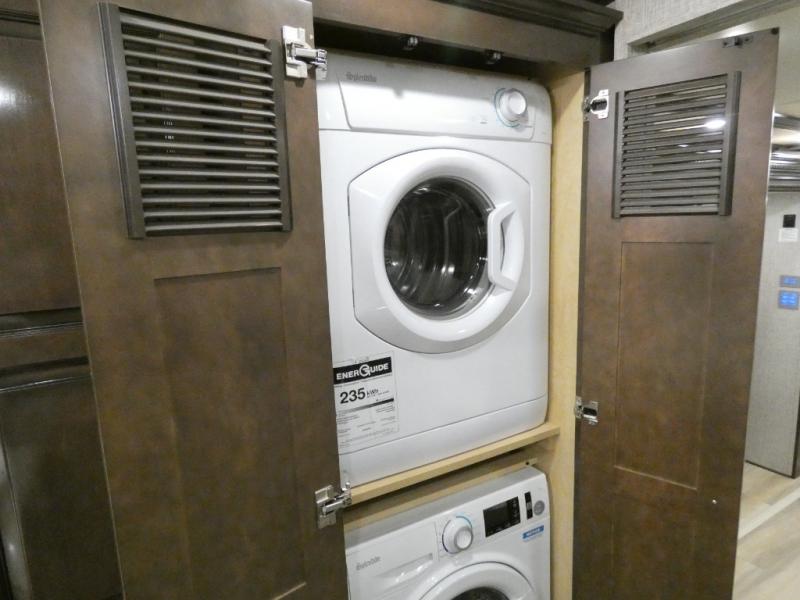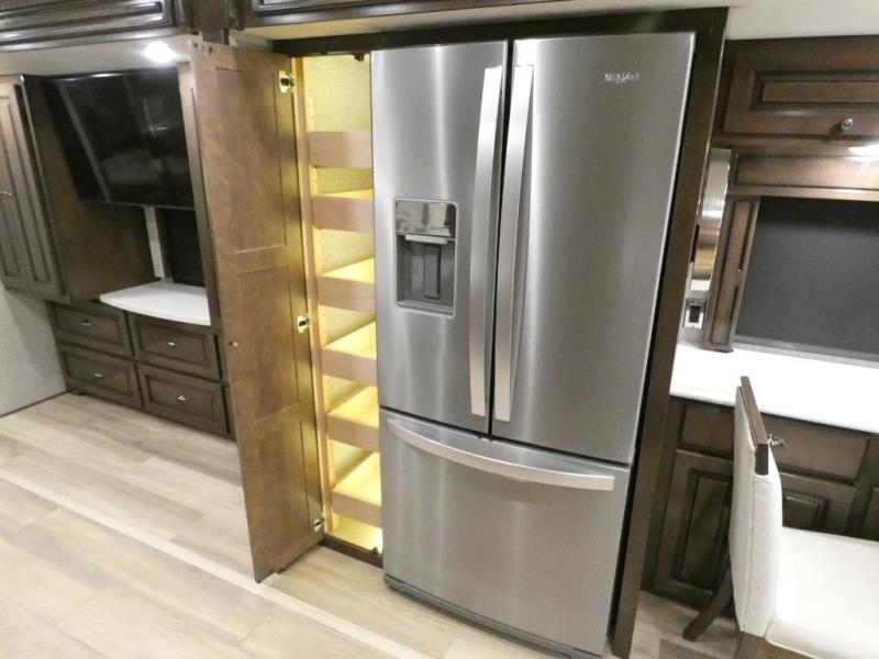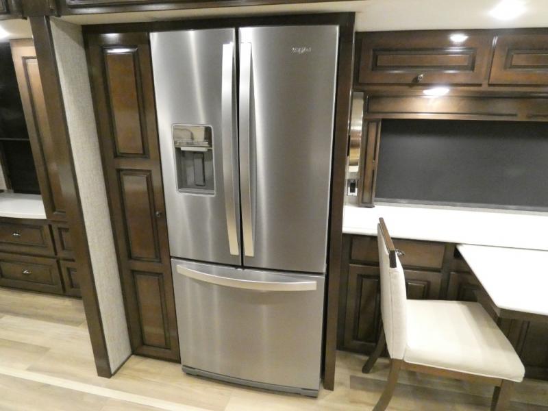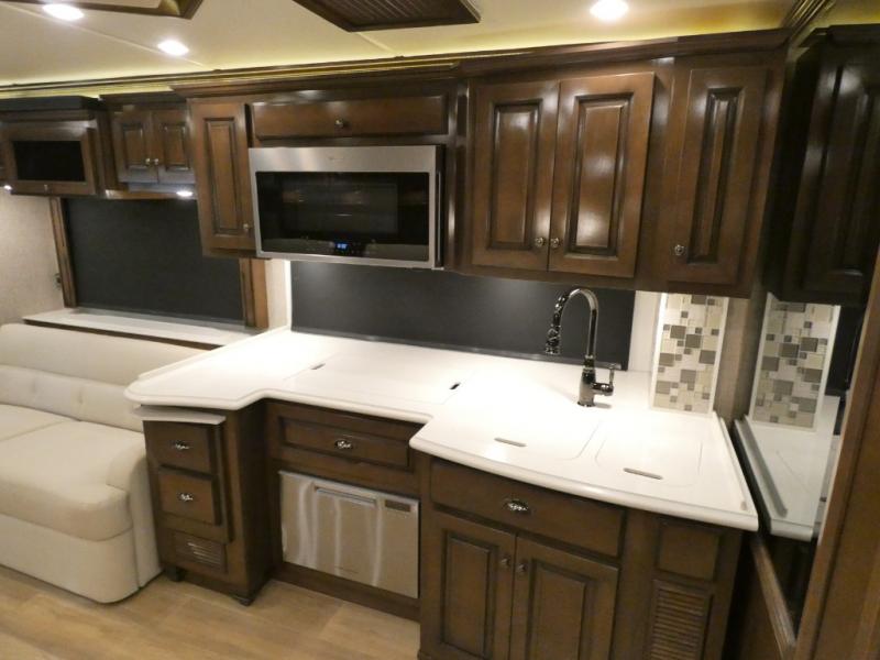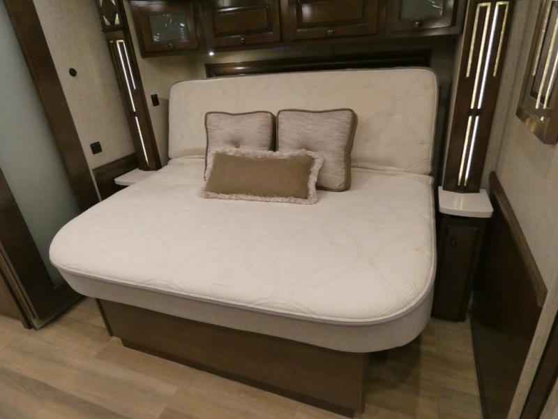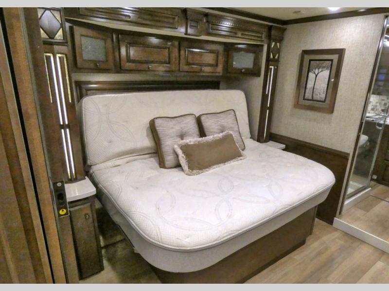 Are you looking to upgrade your motorhome to a more luxurious unit? Look no further than this Dutch Star Class A diesel motorhome. You will love the space provided by the full-wall slide and two additional slides, plus the rear bath cathedral ceiling will add extra height. Take a rest on the pillowtop king bed or relax on the hide-a-bed sofa. There is a passenger workstation and a hide-a-leaf dinette if you're needing to get some work done while on vacation, and the power awning outside will provide shade if you're wanting to work in fresh air. Don't worry about stopping for food because this model includes a Whirlpool 19.7-cu. ft. stainless steel refrigerator that will allow you to stock up for the week, and you can cook with the stainless steel convection microwave with a three-burner recessed gas cooktop!