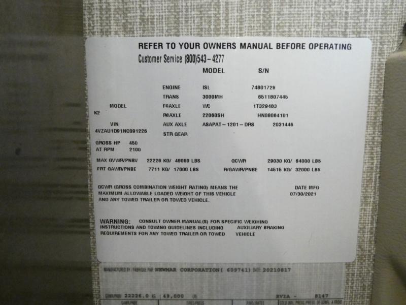 Luxurious accommodations and elegant amenities are found in abundance on the Newmar Dutch Star Class A diesel motorhome! The interior features a porcelain tile floor, decorative wall art, hardwood raised panel doors, MCD window shades, super-polished solid-surface countertops, six-way power cab seats with recliner and footrest, push-to-release drawer slides in the pantry, and a passenger seat work station. The benefits don't stop there! You'll find great convenience from the rearview color monitor system with audio, and there is a Bluetooth microphone for the dash radio. The roof has been prepped for a satellite dish, and the dash radio comes with a Harman/JBL 180W sound system and subwoofer.
