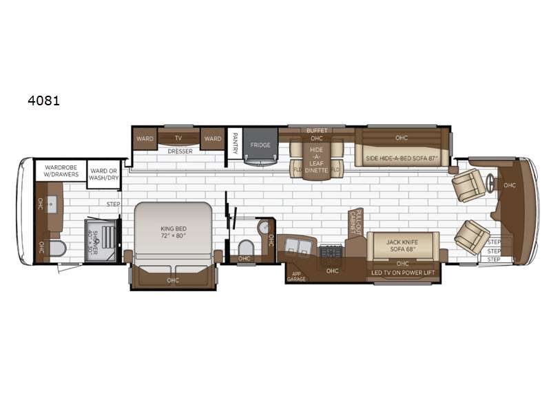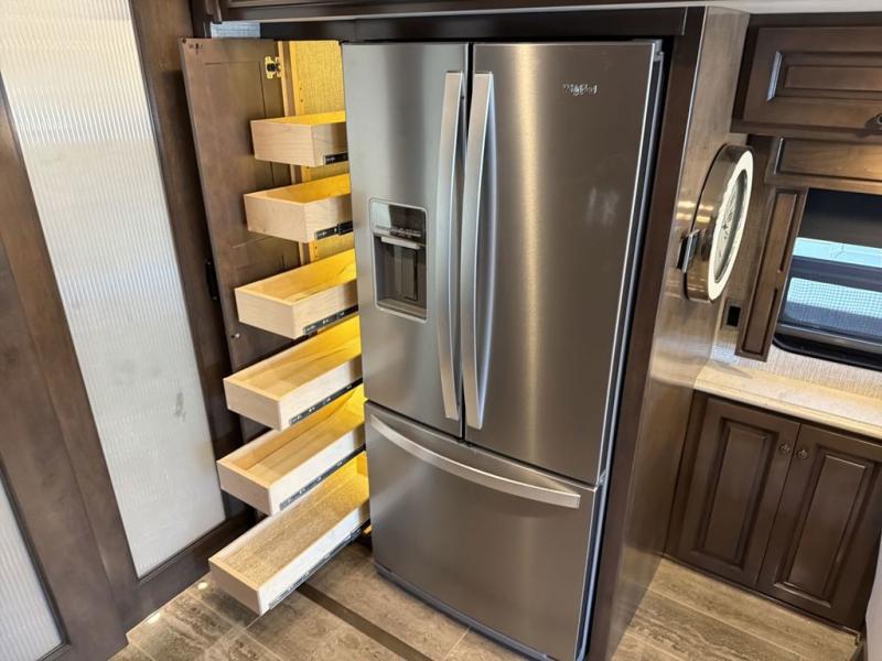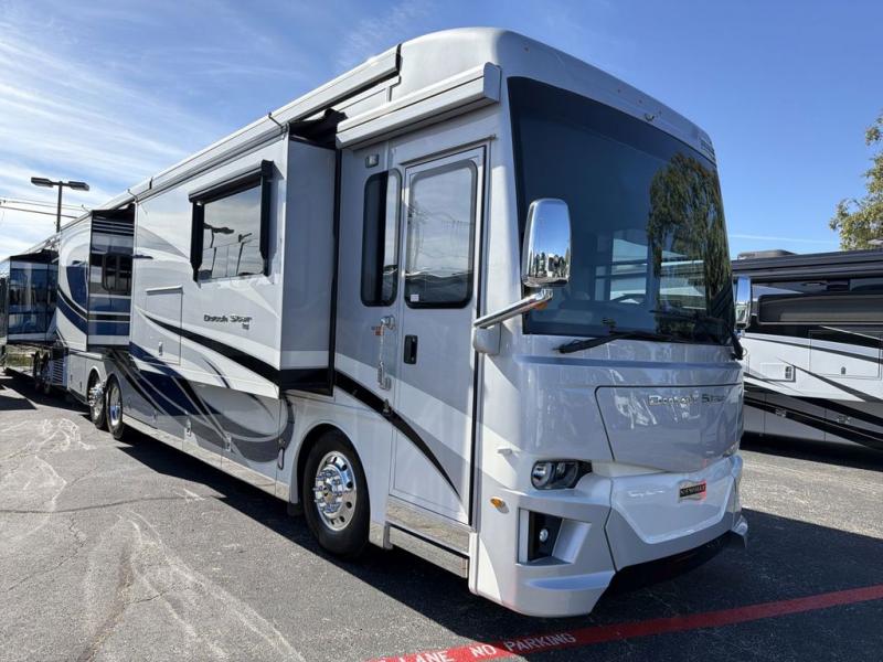 Are you looking to upgrade your motorhome to a more luxurious unit? Look no further than this Dutch Star Class A diesel motorhome. You will love the space provided by the full-wall slide and two additional slides, plus the rear bath cathedral ceiling will add extra height. Take a rest on the pillowtop king bed or relax on the hide-a-bed sofa. There is a passenger workstation and a hide-a-leaf dinette if you're needing to get some work done while on vacation, and the power awning outside will provide shade if you're wanting to work in fresh air. Don't worry about stopping for food because this model includes a Whirlpool 19.7-cu. ft. stainless steel refrigerator that will allow you to stock up for the week, and you can cook with the stainless steel convection microwave with a three-burner recessed gas cooktop!