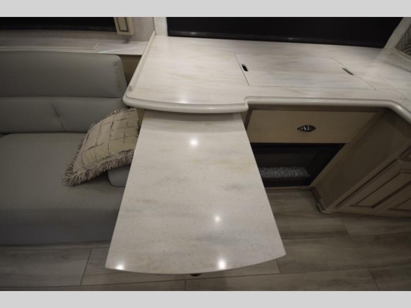 Hide-A-Leaf Dinette + Passenger Workstation – Built-in spaces to dine, work, or game