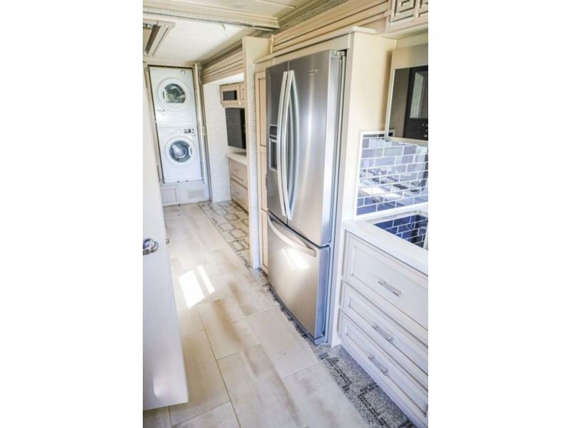 This motorhome is perfect for a couple's getaway! You can also invite a guest or two to tag along and sleep on the 87" hide-a-bed sofa slide once converted. Prepare your best home cooked meals in the fully-appointed kitchen with the three burner recessed gas cooktop, stainless steel convection microwave, and 10 cu. ft. Norcold refrigerator, plus you can add convenient features like the optional dishwasher. The full bathroom has a 40" x 32" shower with a seat for you to take a nice hot shower each morning after getting a good night's rest on the king bed inside the rear private bedroom. The bedroom also has a dresser with a Samsung LED 4K TV and a wardrobe with sliding mirror doors next to an area prepped to add an optional washer and dryer!