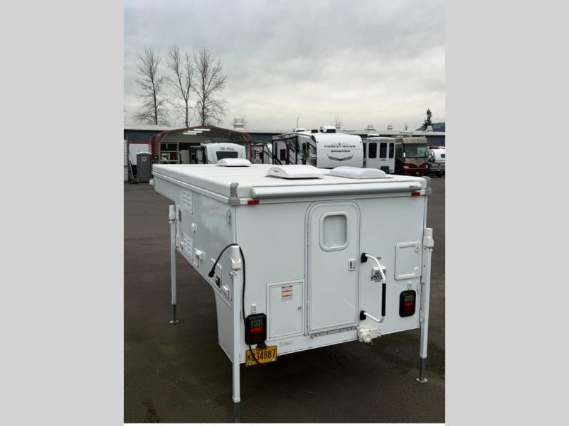 If you have a standard short bed (6' 4" to 6' 10") or long bed (8') truck then you need this truck camper! With the cassette toilet in the wet bath, you won't have to unload your camper to dump your waste tank. Feel well rested after sleeping on the front queen bed with hamper storage on either side of it and fry some eggs up on the Dometic two burner stove top with iron grate upgrade. There is a Dometic three way 3.7 cu. ft. refrigerator to store any leftovers and a wardrobe to store your clothes. A few other features you will appreciate include an exterior shower, an auto ignition water heater, and a lower profile for less wind resistance!