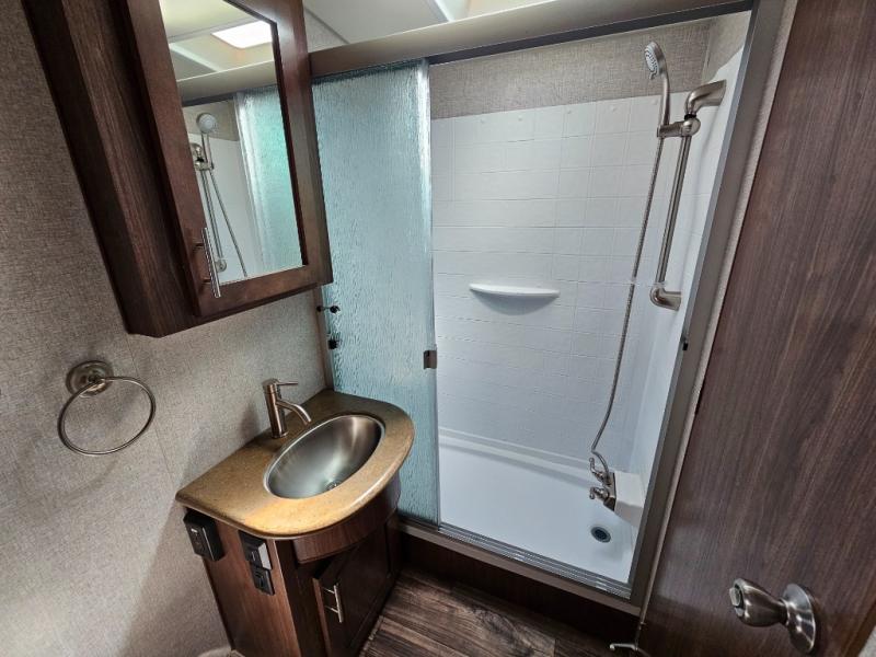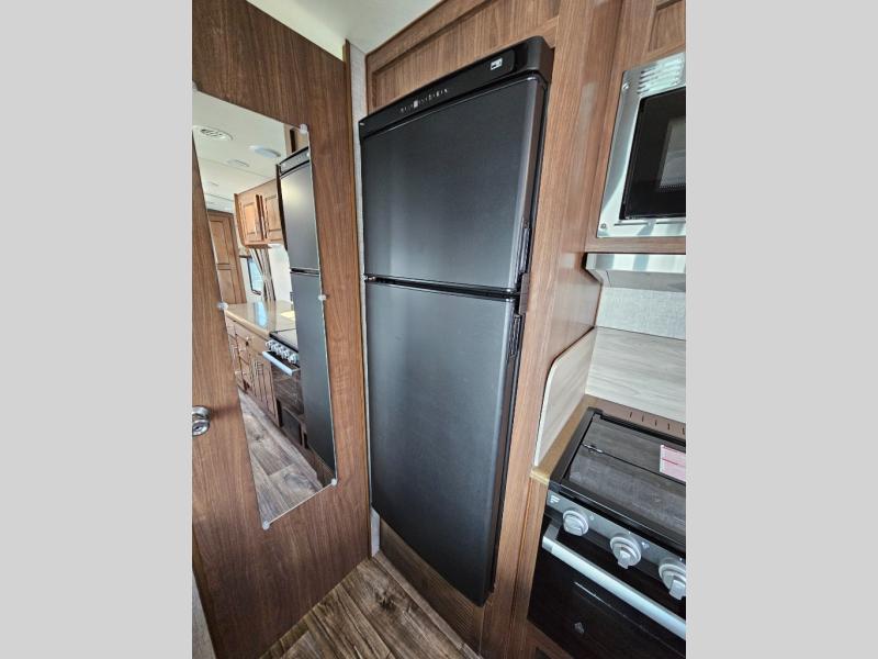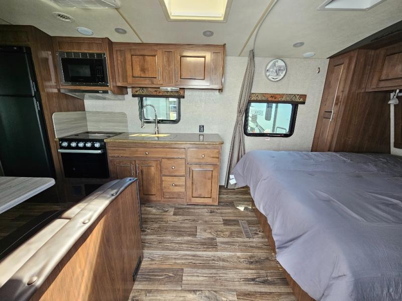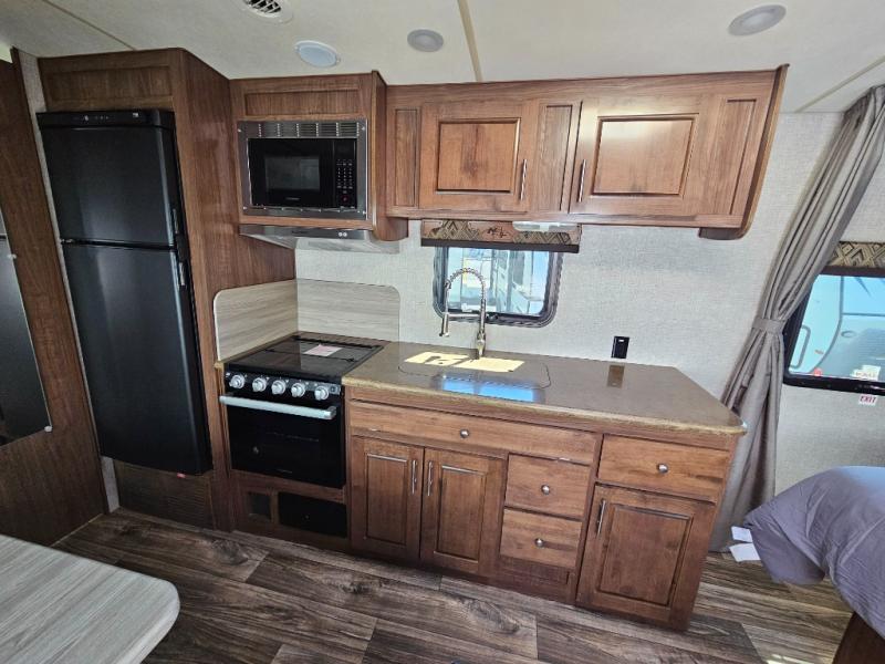 You will enjoy getting away every weekend with this Arctic Fox North Fork travel trailer! The 10 cubic foot large refrigerator will give you a place to store your perishable ingredients while the residential microwave will allow you to heat up a quick meal each night. After hiking and biking all day long, the 28" LED TV will be a great way to spend the rest of the night before going to sleep on the RV queen bed.