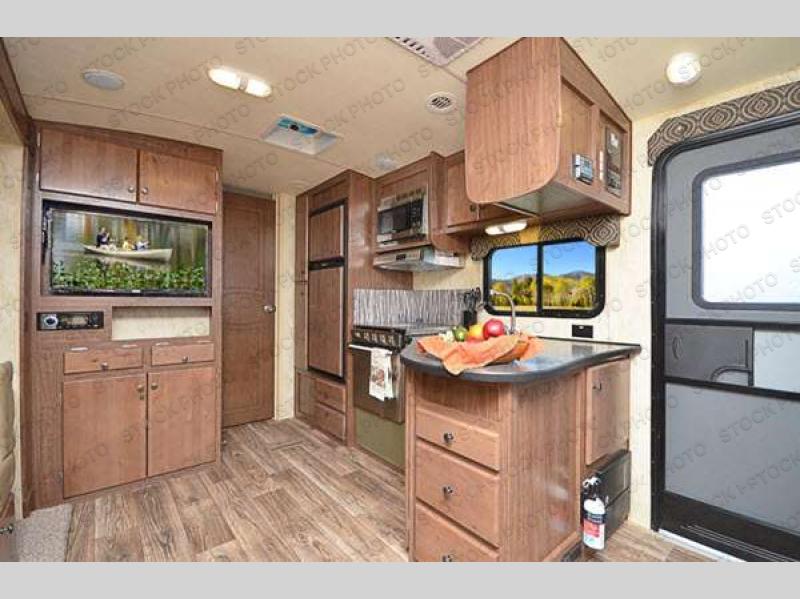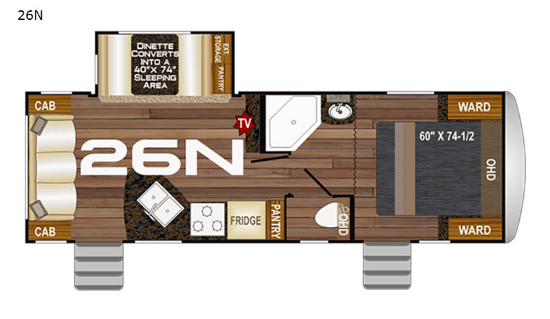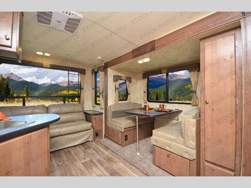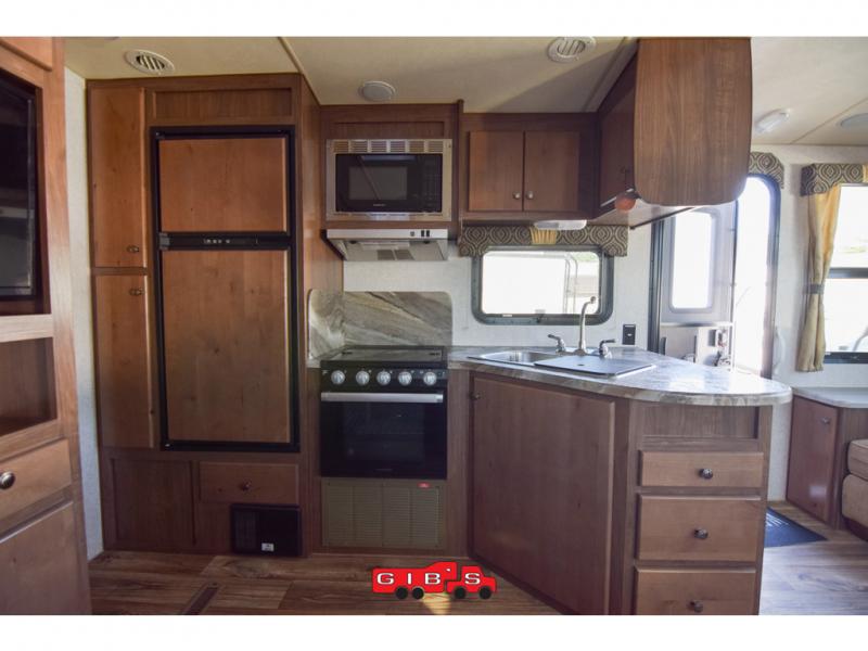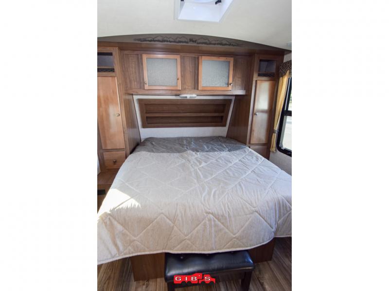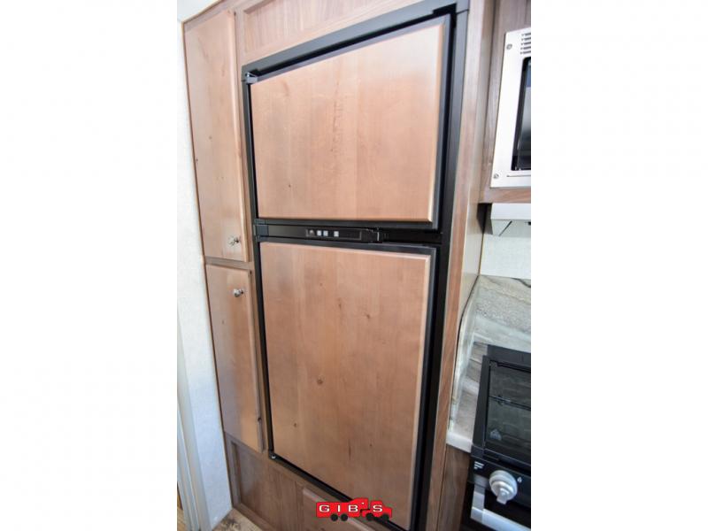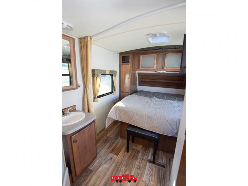 This is the perfect couples trailer with space for guests to stay the night! Beginning with the dual entry doors allowing you access to the front bedroom or the rear living area, this is a convenience you didn't even know you would love! The cook will have full amenities to make meals, plus a pantry for dry goods, and the slide out dinette offers more floor space to relax while playing games or relaxing on the sofa. The bathroom is split with a private toilet room from the angled shower and sink which are within the bedroom, or you can close the curtain for privacy, and the walk-around RV queen bed will give you a good night's sleep.