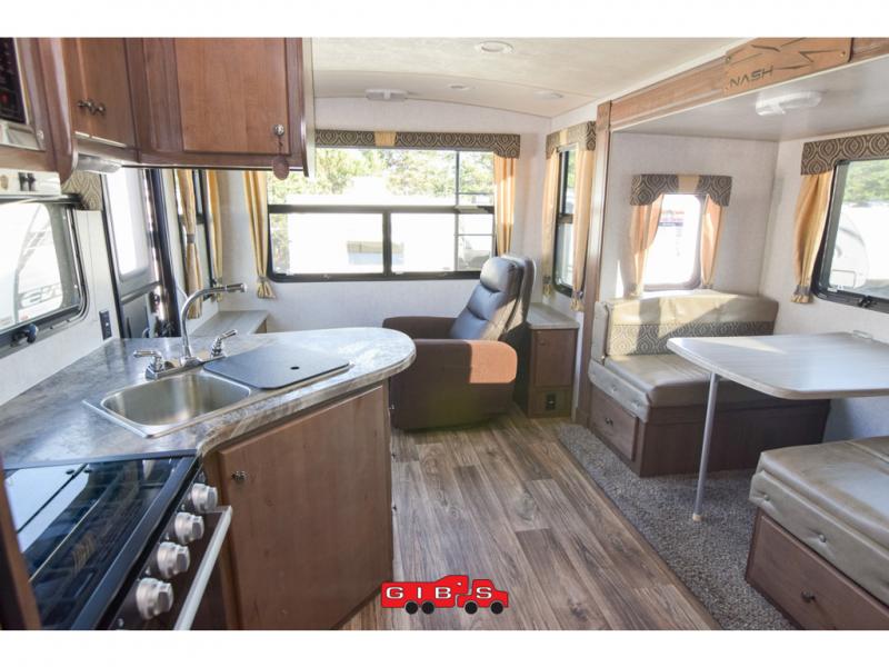 Every one of these Northwood Nash travel trailers are built off-road tough! From the Northwood custom built chassis that has been independently tested and certified to the bonded roof truss system, the easy lube axles, and shock absorbers. The one piece laminate fiberglass walls, the structural joints reinforced with steel Hurricane plates, and the 5/8" T & G plywood decking ensures these units will hold up through any adventure. The interiors are also built sturdy with the dual rack and pinion ram slide room, the ultimate durability floor structure with commercial grade linoleum with a 20 mil surface, and the custom built cabinetry with a face frame construction that is mounted to the wall and ceiling. There is also a long list of standard features to make your next camping adventure a great one!