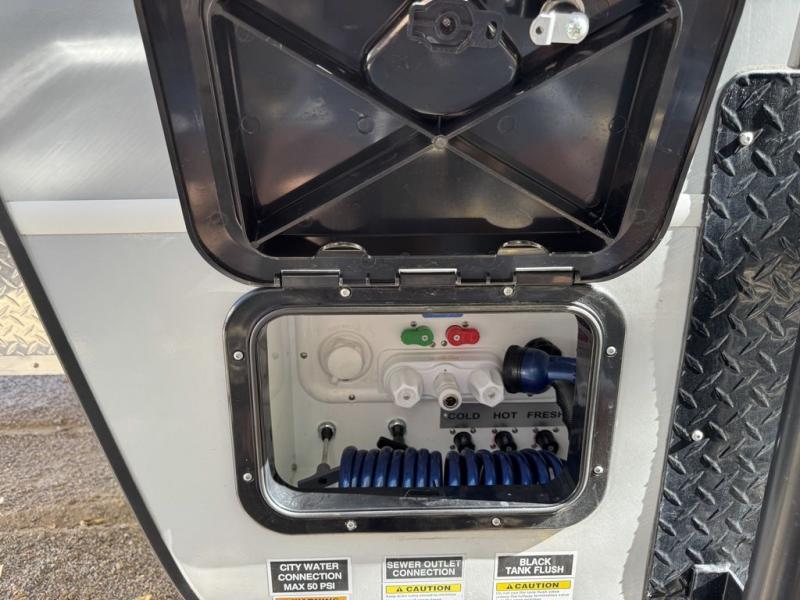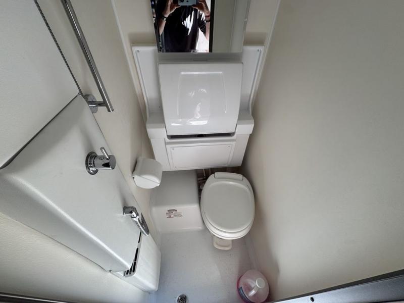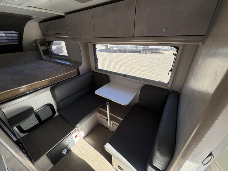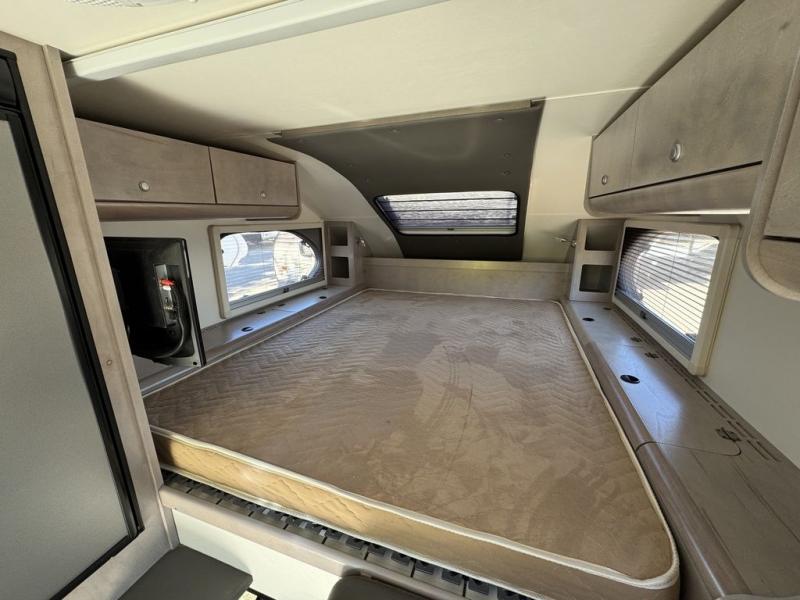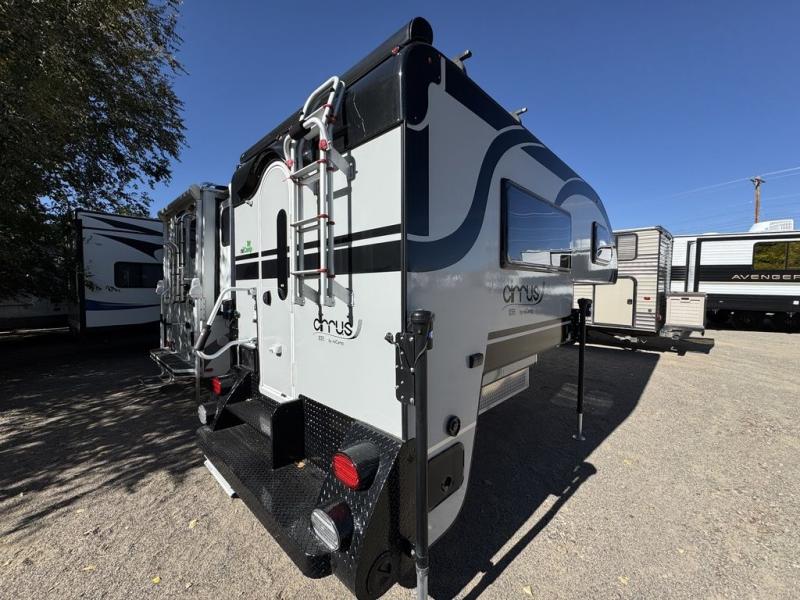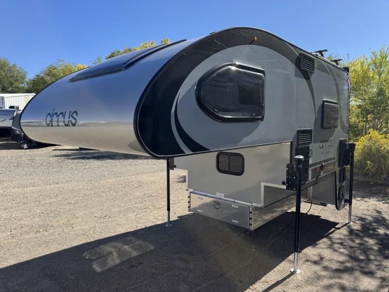 You will find a pass-thru window on this Cirrus truck camper. The exterior has a Maggie roof rack for bringing along extra gear, and there is a motorized 8' side awning to protect you while you're living life outside. The convection microwave/oven is going to make your meal prep easier and faster, and the air conditioning will keep this camper's interior at a desirable temperature even when it's hot outside. This model also comes with an HDTV dish and a great sleeping area with the Froli sleep system.