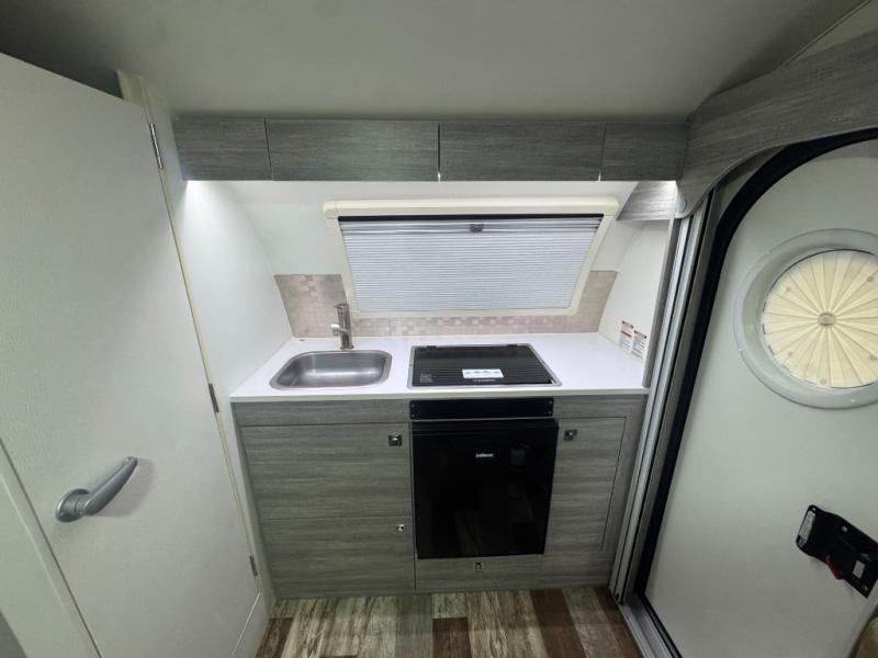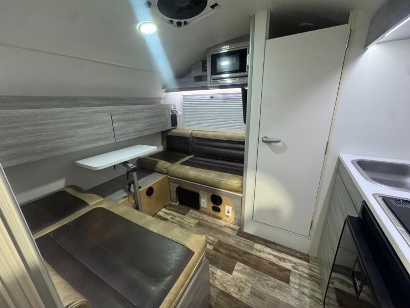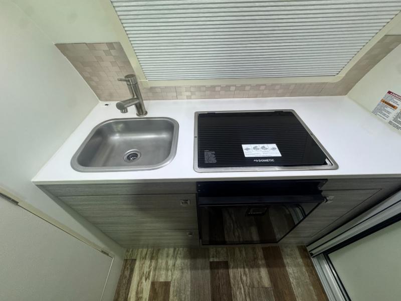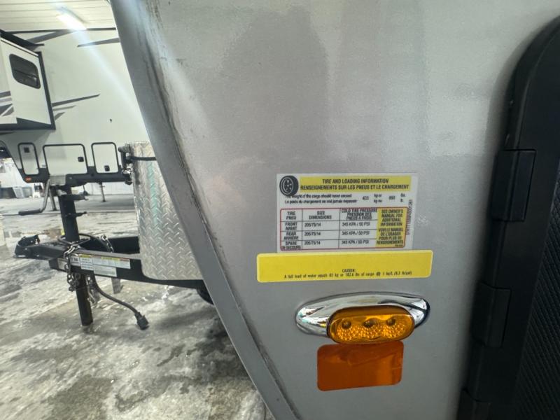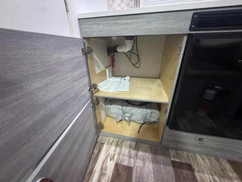 Whether you make plans or enjoy last-minute trips, this trailer offers all the essentials for a perfect weekend! From the interior kitchen, the wet bath and the U-shaped dinette that offers two sleeping configurations, you will have everything you need. You can choose to setup a full bed or split beds, keep your electronics charged with the dual 110/USB ports, make warm meals using the two burner glass-top stove, and store cold items in the 12V refrigerator. And the wet bath or the external shower will keep you clean and refreshed while camping.