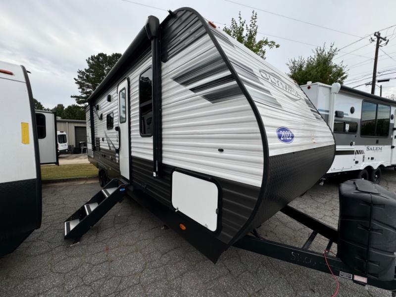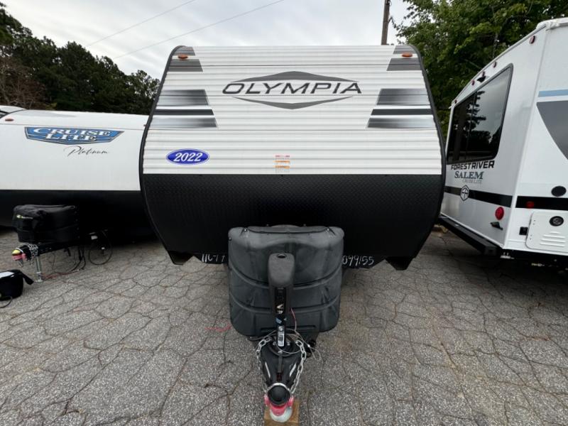You will feel confident traveling in any one of these Olympia travel trailers! These units are kid and pet friendly with residential vinyl flooring throughout, flush floor slides, and vinyl furniture. The luxurious interiors are designed with roller night shades and tinted safety glass windows for privacy, decorative sofa pillows, an over-sized single basin kitchen sink, and pressed membrane countertops to prepare your meals. The PVC roofing membrane is flexible, puncture resistant, and recyclable, plus it can reflect solar heat and UV rays. A thermal seal including an enclosed, insulated and heated underbelly allow you to camp any time of the year. Self-adjusting electric brakes and E-Z lube axles ensure you will safely arrive to each destination. A few other features you will appreciate include an exterior docking station, 96" exterior width, a Magnum Roof system, and a solid swing-down entry step for easy entering and exiting!