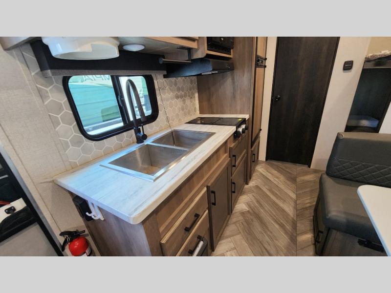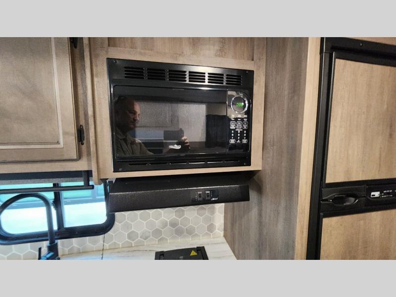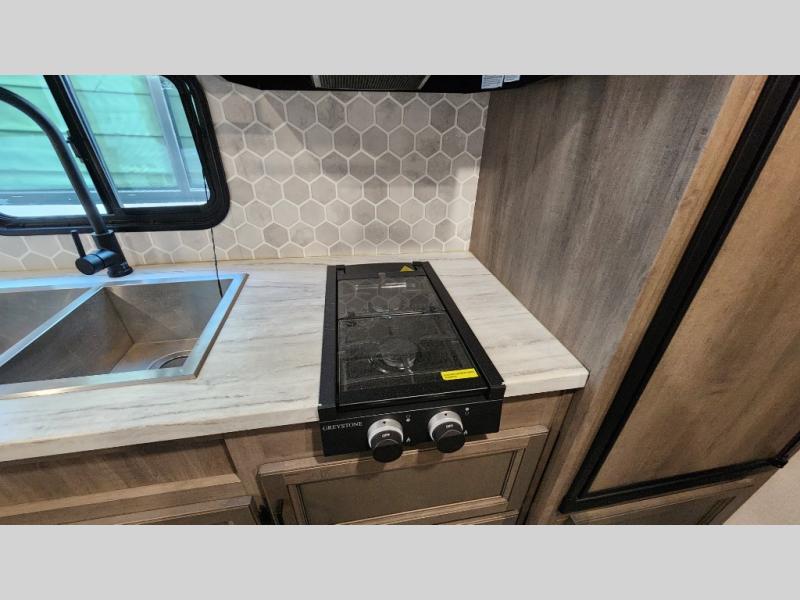 You are going to love how much freedom you'll have with the Olympia Sport travel trailer! Because these units are lightweight and compact, you won't have much trouble getting them to and from the campsite. The interior has residential vinyl flooring, 75-LB ball-bearing drawer guides, hardwood cabinet doors, and LED lighting. With the Sport Package, you'll find features such as the 15" off-road radial tires, flipped axle for increased ground clearance, and Sport exterior graphics package. The Customer Convenience Package includes features that are accommodating for the whole family, like the power awning with LED lights, digital TV antenna, gas/electric DSI water heater, and preparations for solar power.