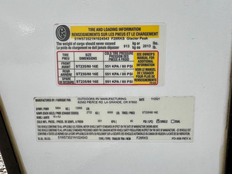 Used 2022 Outdoors RV Glacier Peak Mountain Series F28RKS Fifth Wheel