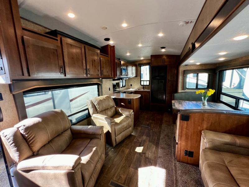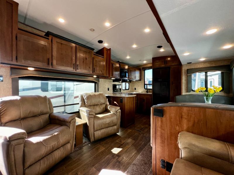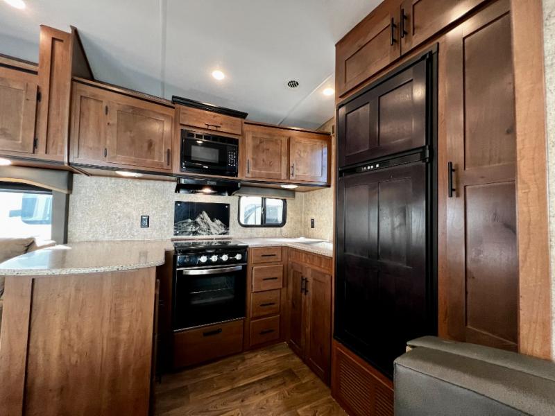 Each one of these Outdoors RV Glacier Peak Mountain Series fifth wheels are built with a rugged 8" HD I-beam, custom built chassis, and an Off Road X4 Suspension package so you can go off-road camping! The heavy duty 6,000 lb. axles, 16" E rated tires, and fiberglass front cap are just a few more sturdy features. Some off-grid camping features you will appreciate include a Progressive Dynamics four stage converter with built-in charge wizard, a 78+ gallon fresh water capacity, and a battery disconnect switch protected inside the front luggage compartment, plus there is an off-grid solar ready roof port for up to 510 watts. You will stay warm even when you go camping in the winter too thanks to the XL furnace, the Mountain Extreme thermal pane windows, and the triple layered four seasons roof insulation. There's a model waiting for you!