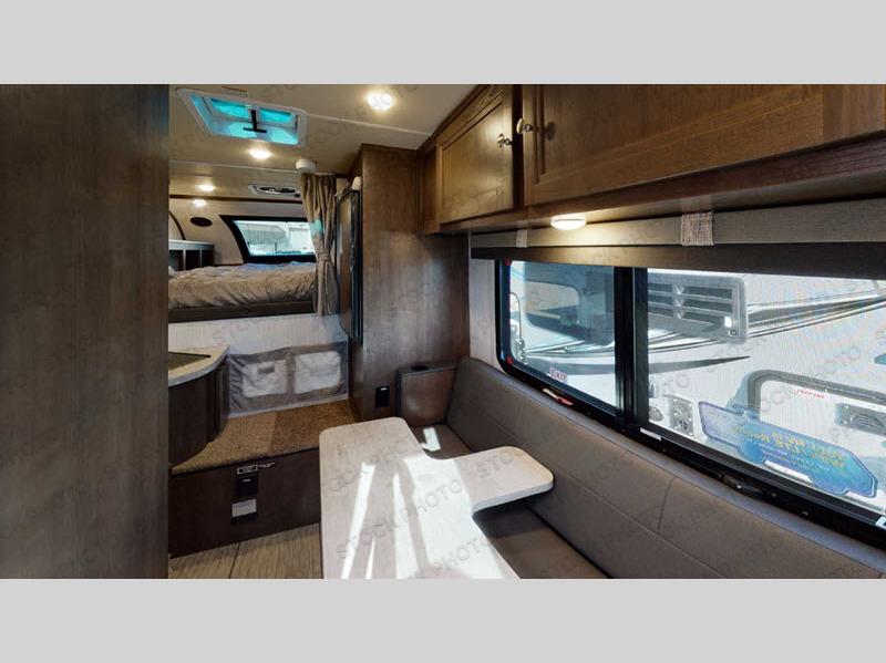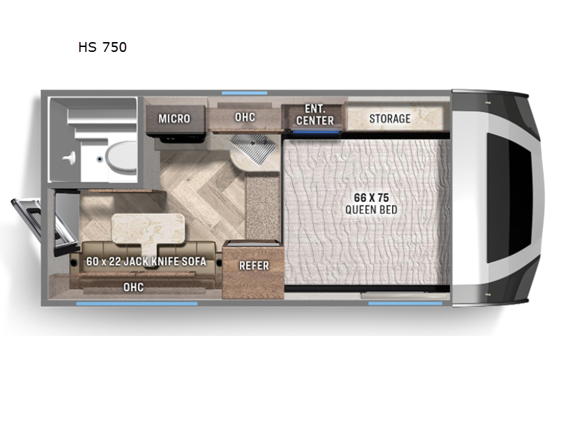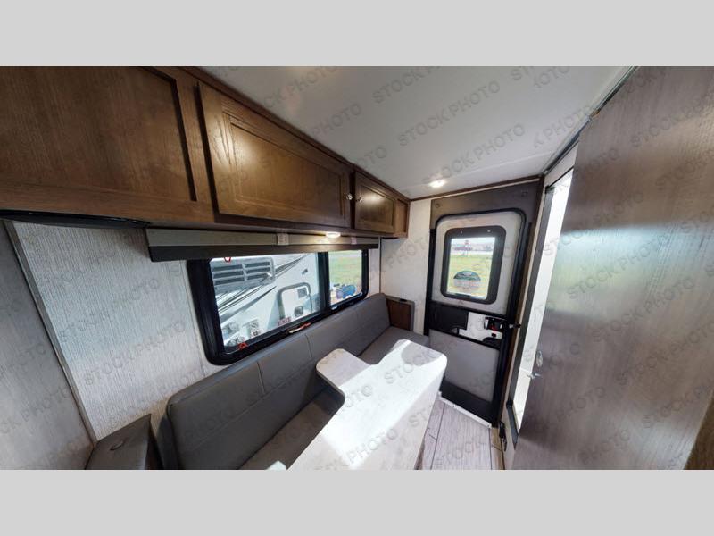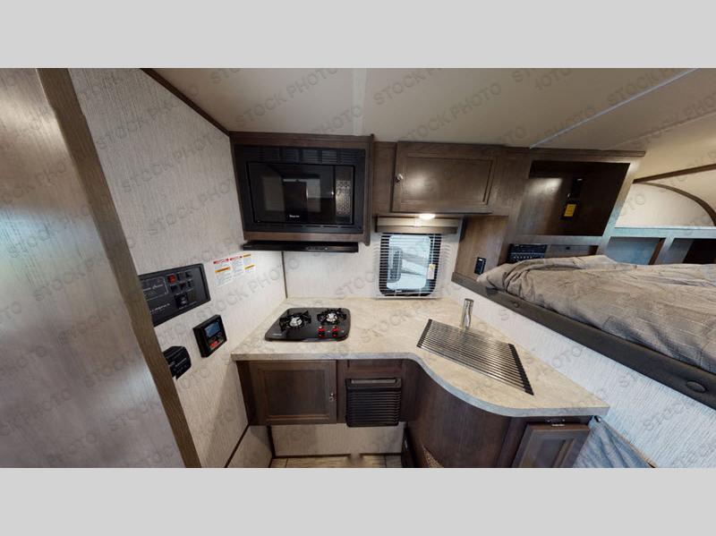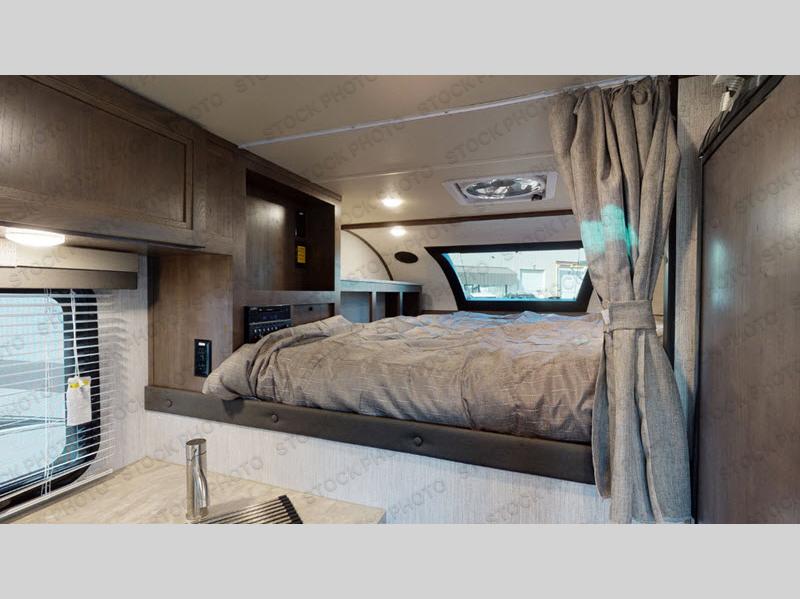 You will have everything you need for a comfortable trip in this hard side truck camper! There is a front queen bed to lay your head on at night with storage next to it and an entertainment center if you choose to add the optional TV. Above the two burner cooktop and double sink are overhead cabinets to store your cooking essentials. The 60" x 22" jackknife sofa is not only a comfortable place to enjoy your meals, but also for transforming into an extra sleeping space, plus it has overhead cabinets to store your games. You even have a wet bath to freshen up in each morning!