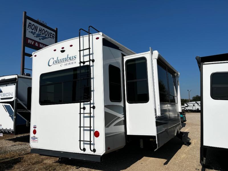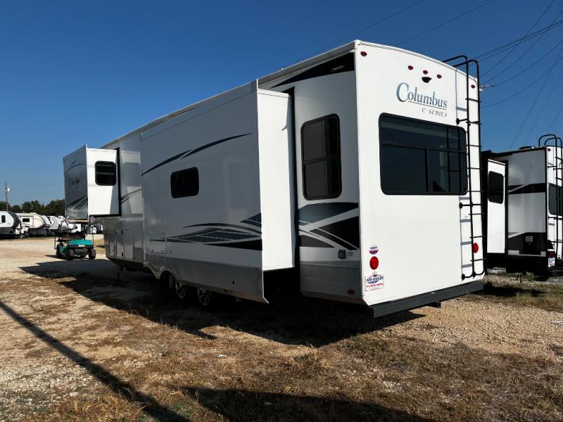 Experience a different camping life with residential furnishings and high end features in each one of these Palomino Columbus fifth wheels! The 101" wide body lets you walk around more throughout and the all-welded aluminum-frame superstructure has a snap-in ceiling molding to hold up through every adventure. Don't leave any of your gear behind either when you can easily store it in the climate controlled drop frame storage area. On the exterior, you'll find a heated utility convenience center, an outside shower to keep the dirt outside where it belongs, and magnetic compartment door holds to keep them from falling on you as you grab your items. Plus, there are some modern features that will really seal the deal like the Wi-Fi Booster with 4G LTE capability, the central vacuum system, the preparations for a washer/dryer, and the preparations for 200W solar panels with 6V batteries.
