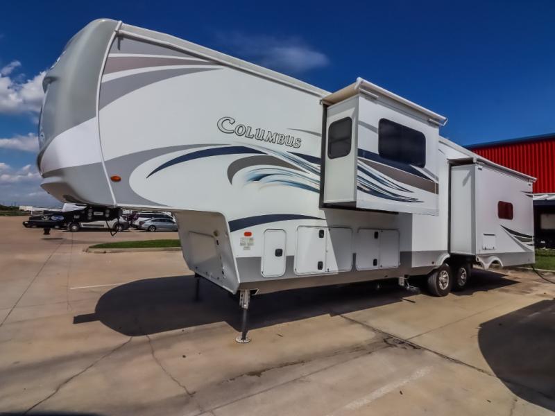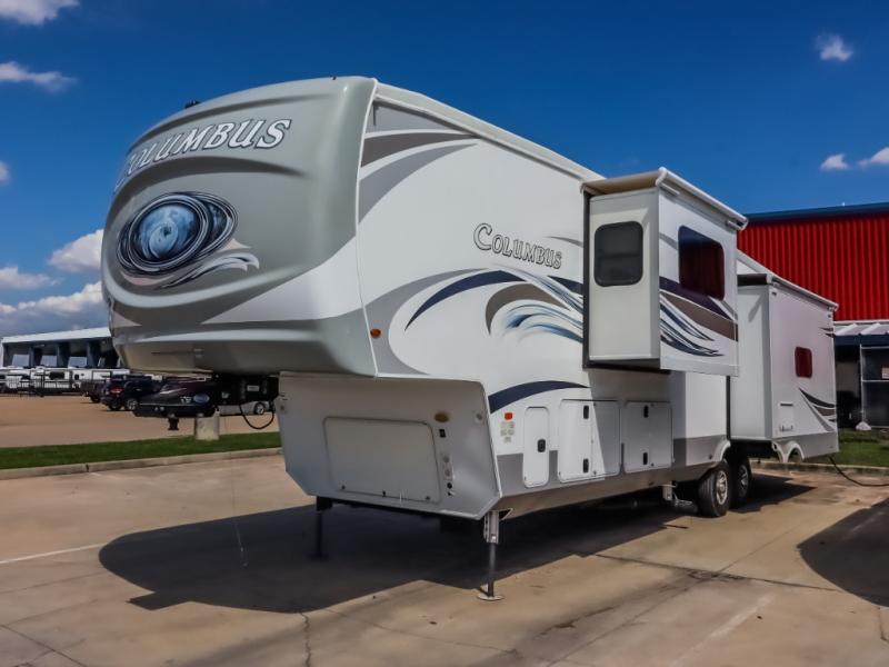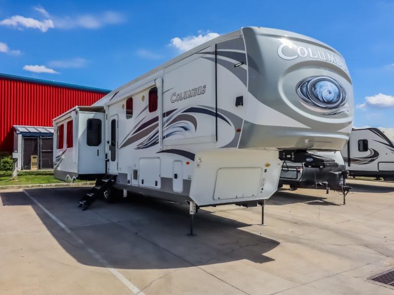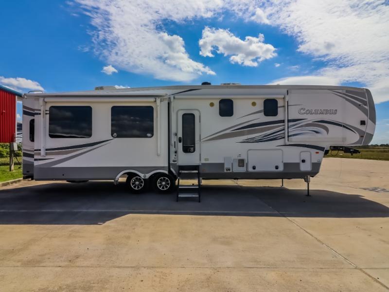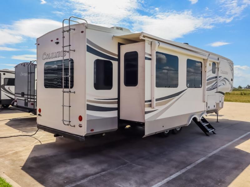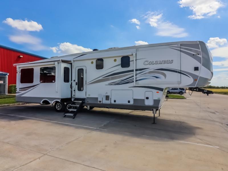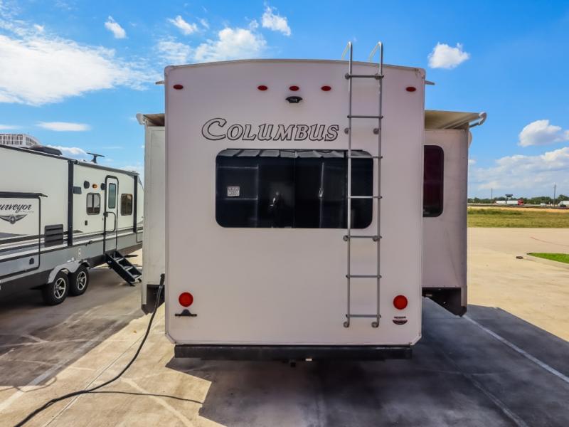 Experience a different camping life with residential furnishings and high end features in each one of these Palomino Columbus fifth wheels! The 101" wide body lets you walk around more throughout and the all-welded aluminum-frame superstructure has a snap-in ceiling molding to hold up through every adventure. Don't leave any of your gear behind either when you can easily store it in the climate controlled drop frame storage area. On the exterior, you'll find a heated utility convenience center, an outside shower to keep the dirt outside where it belongs, and magnetic compartment door holds to keep them from falling on you as you grab your items. Plus, there are some modern features that will really seal the deal like the Wi-Fi Booster with 4G LTE capability, the central vacuum system, the preparations for a washer/dryer, and the preparations for 200W solar panels with 6V batteries.