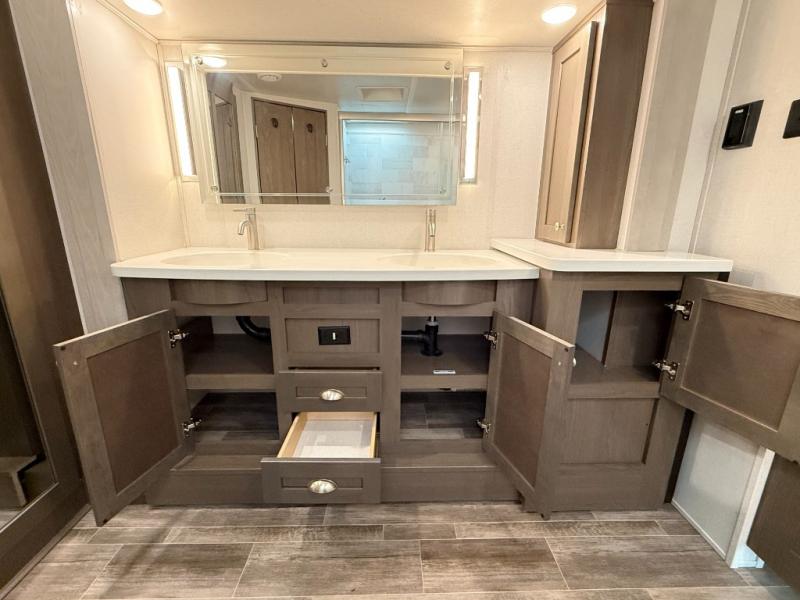 Many units come with upgraded features: power theater seats, residential furniture, solid wood details, dual sink vanities, washer/dryer prep.
