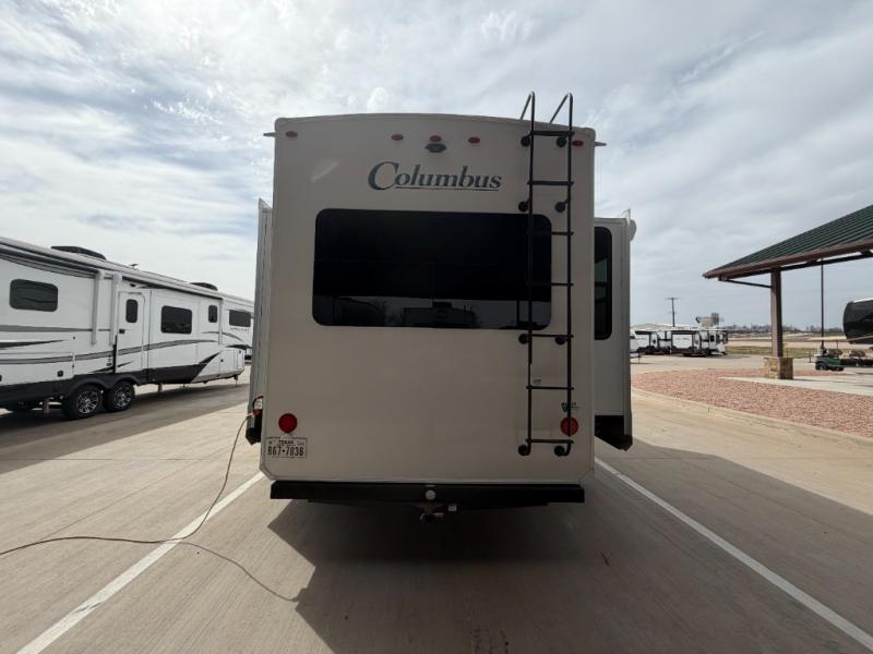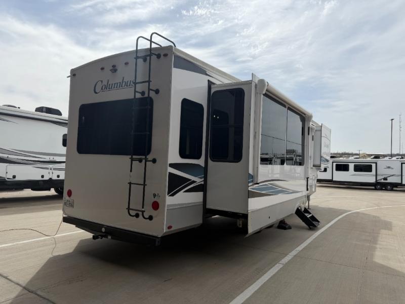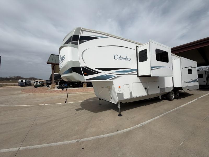 Experience a different camping life with residential furnishings and high end features in each one of these Palomino Columbus fifth wheels! The 101" wide body lets you walk around more throughout and the all-welded aluminum-frame superstructure has a snap-in ceiling molding to hold up through every adventure. Don't leave any of your gear behind either when you can easily store it in the climate controlled drop frame storage area. On the exterior, you'll find a heated utility convenience center, an outside shower to keep the dirt outside where it belongs, and magnetic compartment door holds to keep them from falling on you as you grab your items. Plus, there are some modern features that will really seal the deal like the Wi-Fi Booster with 4G LTE capability, the central vacuum system, the preparations for a washer/dryer, and the preparations for 200W solar panels with 6V batteries.