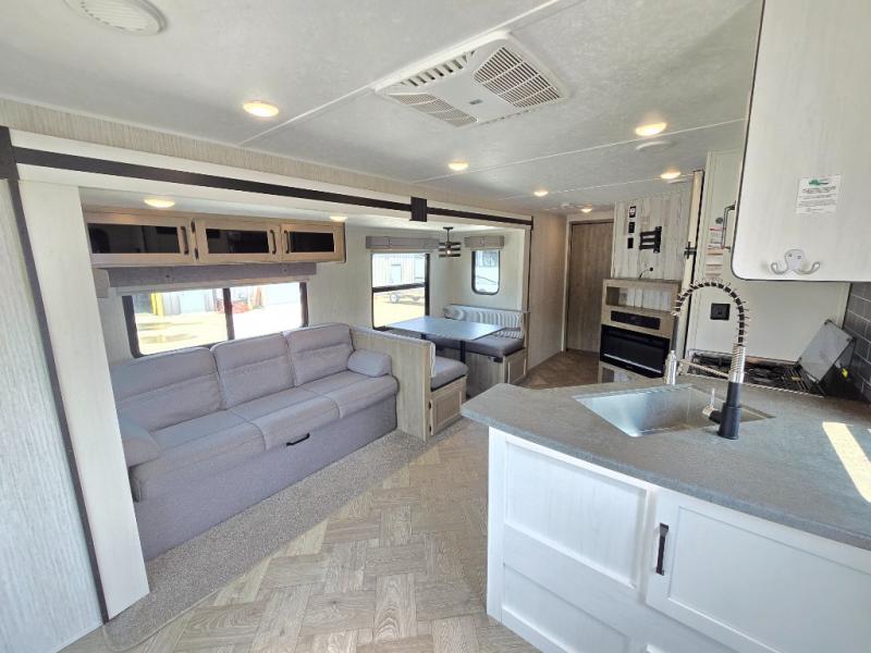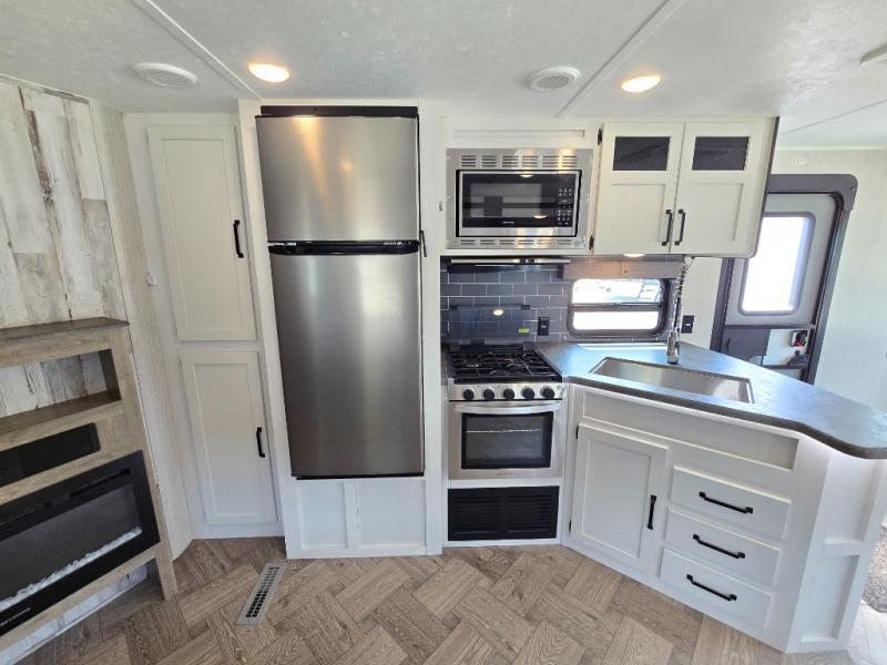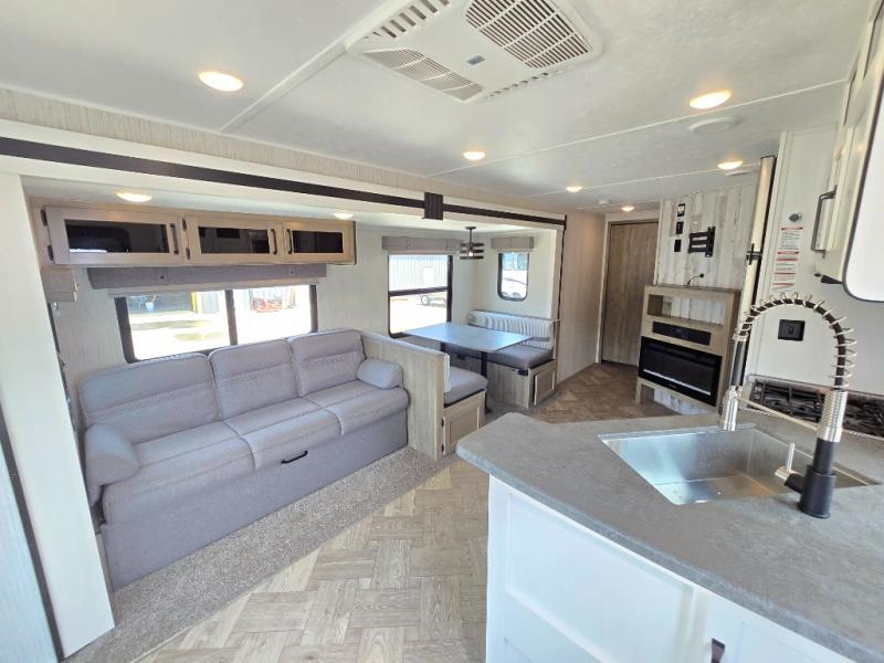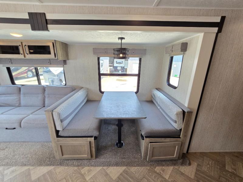 If you're looking for family-fun adventure then you need one of these Palomino Puma fifth wheels, travel trailers, or toy haulers! They are built rugged, easy to tow, and jam packed with features. The Darco wrapped underbelly will protect your units vitals through every season and the AlphaPly roofing membrane covers it. They also have super lube axles and a powder coated frame. Their luxurious interiors feature a spice rack and built-in knife rack in the kitchen, USB charging ports to keep your electronics at 100%, and high density foam mattresses for a good night's rest. The required Advantage package comes with night roller shades for privacy at night, two outside speakers to crank up the tunes while you play cornhole, and an outside shower to keep the dirt outside where it belongs, plus so much more!