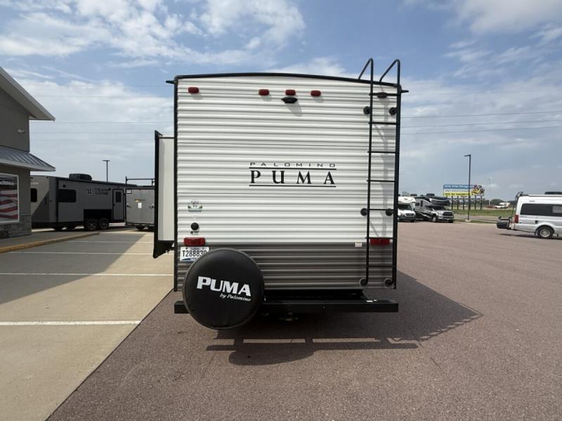 If you're looking for family-fun adventure then you need one of these Palomino Puma fifth wheels, travel trailers, or toy haulers! They are built rugged, easy to tow, and jam packed with features. The Darco wrapped underbelly will protect your units vitals through every season and the AlphaPly roofing membrane covers it. They also have super lube axles and a powder coated frame. Their luxurious interiors feature a spice rack and built-in knife rack in the kitchen, USB charging ports to keep your electronics at 100%, and high density foam mattresses for a good night's rest. The required Advantage package comes with night roller shades for privacy at night, two outside speakers to crank up the tunes while you play cornhole, and an outside shower to keep the dirt outside where it belongs, plus so much more!