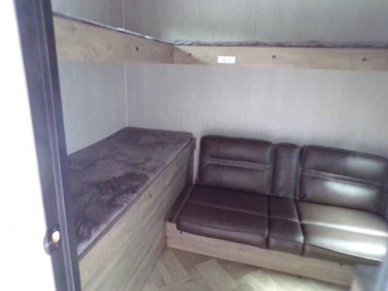 There's a comfortable place to sleep for the whole family in this travel trailer! The rear private bunkhouse has a set of 28" x 76" bunk beds, a 28" x 65" bunk above a sofa, and a wardrobe with an entertainment center above it so they can bring a cousin or two to join in on the fun. You will have your own privacy with the front private bedroom which has a queen bed with shirt closets and nightstands on either side of it. The dual entry bathroom has a 34" x 34" radius shower for everyone to freshen up and one of the entrances leads directly outside so you can get back to having fun fast. Prepare your best home cooked meals indoors with the walk-in pantry, the three burner cooktop, and the 11 cu. ft. stainless steel refrigerator. Plus, there is a U-shaped dinette to enjoy your meals and even transform into an extra sleeping space!