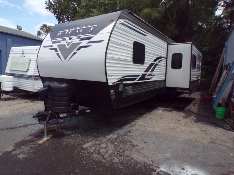 Puma's are built rugged, easy to tow, and jam packed with features. The Darco wrapped underbelly will protect your units vitals through every season and the AlphaPly roofing membrane covers it. They also have super lube axles and a powder coated frame. Their luxurious interiors feature a spice rack and built-in knife rack in the kitchen, USB charging ports to keep your electronics at 100%, and high density foam mattresses for a good night's rest. The required Advantage package comes with night roller shades for privacy at night, two outside speakers to crank up the tunes while you play cornhole, and an outside shower to keep the dirt outside where it belongs, plus so much more!