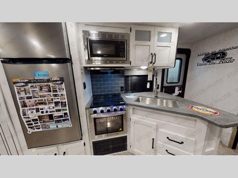 If you're looking for family-fun adventure then you need one of these Palomino Puma fifth wheels, travel trailers, or toy haulers! They are built rugged, easy to tow, and jam packed with features. The Darco wrapped underbelly will protect your units vitals through every season and the AlphaPly roofing membrane covers it. They also have super lube axles and a powder coated frame. Their luxurious interiors feature a spice rack and built-in knife rack in the kitchen, USB charging ports to keep your electronics at 100%, and high density foam mattresses for a good night's rest. The required Advantage package comes with night roller shades for privacy at night, two outside speakers to crank up the tunes while you play cornhole, and an outside shower to keep the dirt outside where it belongs, plus so much more!