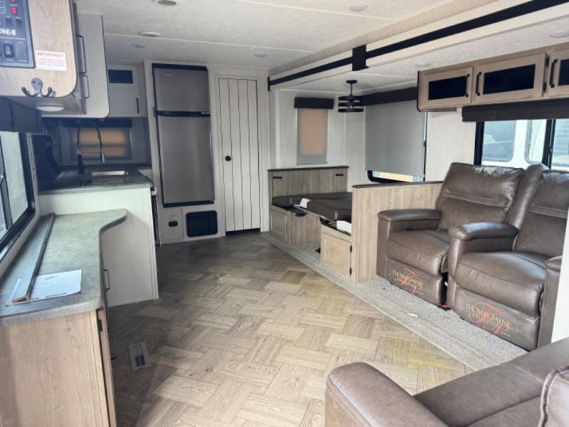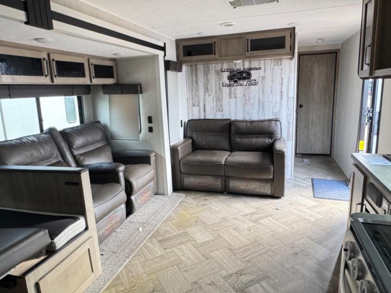 If you're looking for family-fun adventure then you need one of these Palomino Puma fifth wheels, travel trailers, or toy haulers! They are built rugged, easy to tow, and jam packed with features. The Darco wrapped underbelly will protect your units vitals through every season and the AlphaPly roofing membrane covers it. They also have super lube axles and a powder coated frame. Their luxurious interiors feature a spice rack and built-in knife rack in the kitchen, USB charging ports to keep your electronics at 100%, and high density foam mattresses for a good night's rest. The required Advantage package comes with night roller shades for privacy at night, two outside speakers to crank up the tunes while you play cornhole, and an outside shower to keep the dirt outside where it belongs, plus so much more!