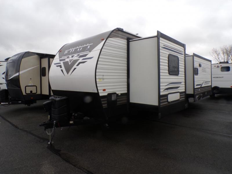 If you're looking for family-fun adventure then you need one of these Palomino Puma fifth wheels, travel trailers, or toy haulers! They are built rugged, easy to tow, and jam packed with features. The Darco wrapped underbelly will protect your units vitals through every season and the AlphaPly roofing membrane covers it. They also have super lube axles and a powder coated frame. Their luxurious interiors feature a spice rack and built-in knife rack in the kitchen, USB charging ports to keep your electronics at 100%, and high density foam mattresses for a good night's rest. The required Advantage package comes with night roller shades for privacy at night, two outside speakers to crank up the tunes while you play cornhole, and an outside shower to keep the dirt outside where it belongs, plus so much more!