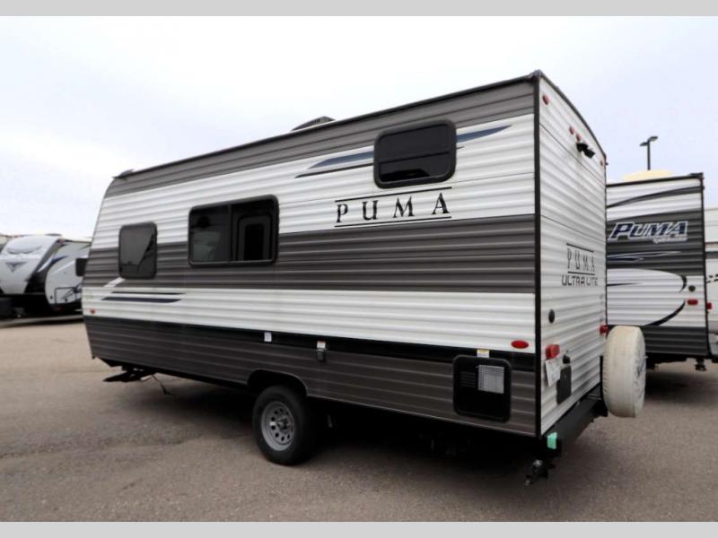 With any Puma Ultra Lite travel trailer or toy hauler by Palomino, you will experience a lighter weight RV that is eco-friendly and offers great fuel efficiency with maximum towability with your own crossover vehicle and smaller SUV. The exterior offers an AlphaPly roofing membrane and a Darco wrapped underbelly for durability and years of use, a power tongue jack for easy setup, a Super Lube axle, a front diamond plate to protect against road debris, front and rear stabilizer jacks, plus solar and WiFi prep. Inside, there is LED ceiling lights, Beauflor linoleum for durability and easy cleanup, a decorative kitchen backsplash, contemporary hardware, light and bath fixtures for style, a divided silverware drawer for organization, and a 78" interior height.