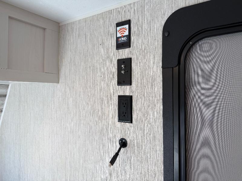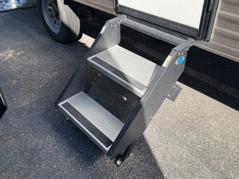 - Power tongue jack and front/rear stabilizer jacks for effortless setup