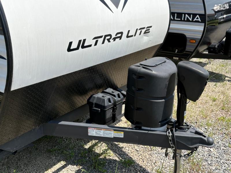 With any Puma Ultra Lite travel trailer or toy hauler by Palomino, you will experience a lighter weight RV that is eco-friendly and offers great fuel efficiency with maximum towability with your own crossover vehicle and smaller SUV. The exterior offers an AlphaPly roofing membrane and a Darco wrapped underbelly for durability and years of use, a power tongue jack for easy setup, a Super Lube axle, a front diamond plate to protect against road debris, front and rear stabilizer jacks, plus solar and WiFi prep. Inside, there is LED ceiling lights, Beauflor linoleum for durability and easy cleanup, a decorative kitchen backsplash, contemporary hardware, light and bath fixtures for style, a divided silverware drawer for organization, and a 78" interior height.