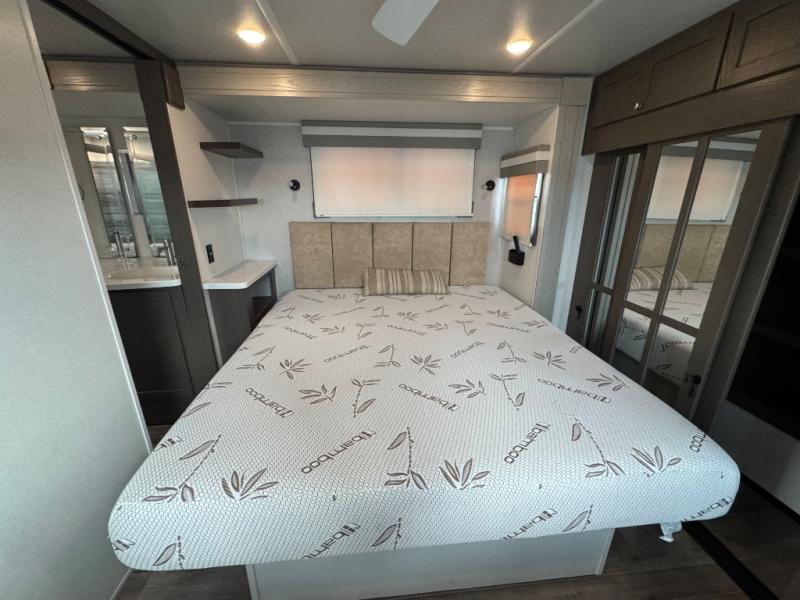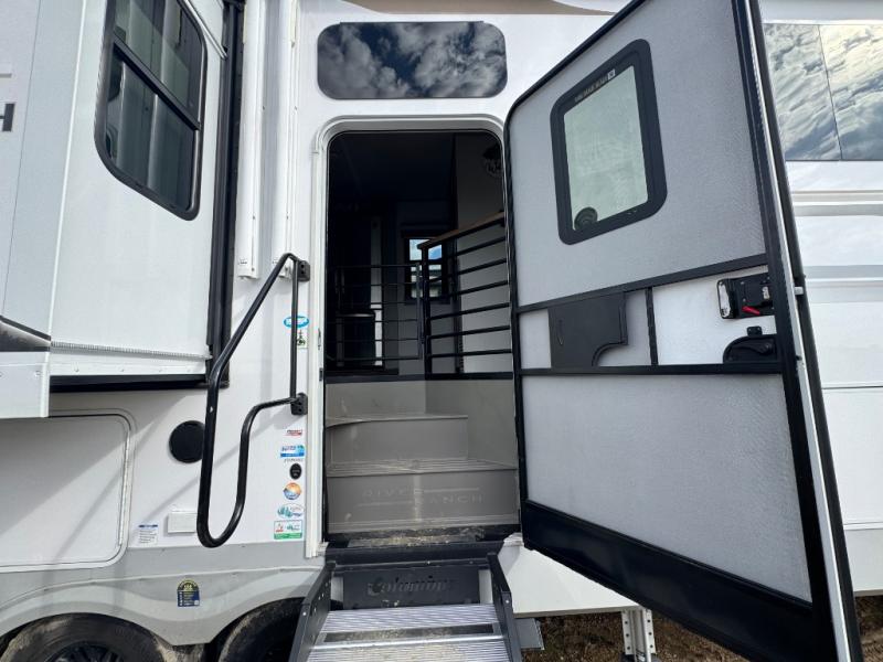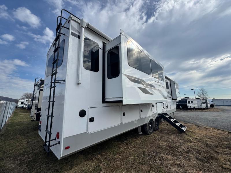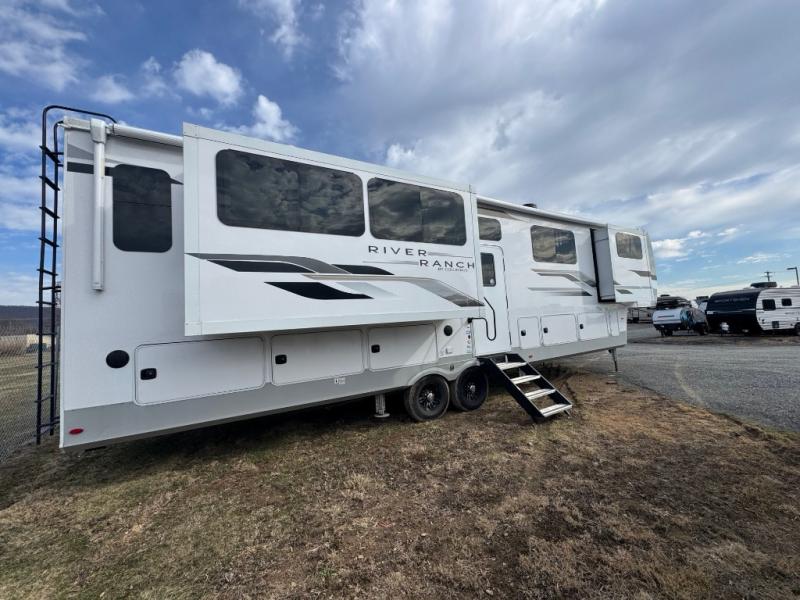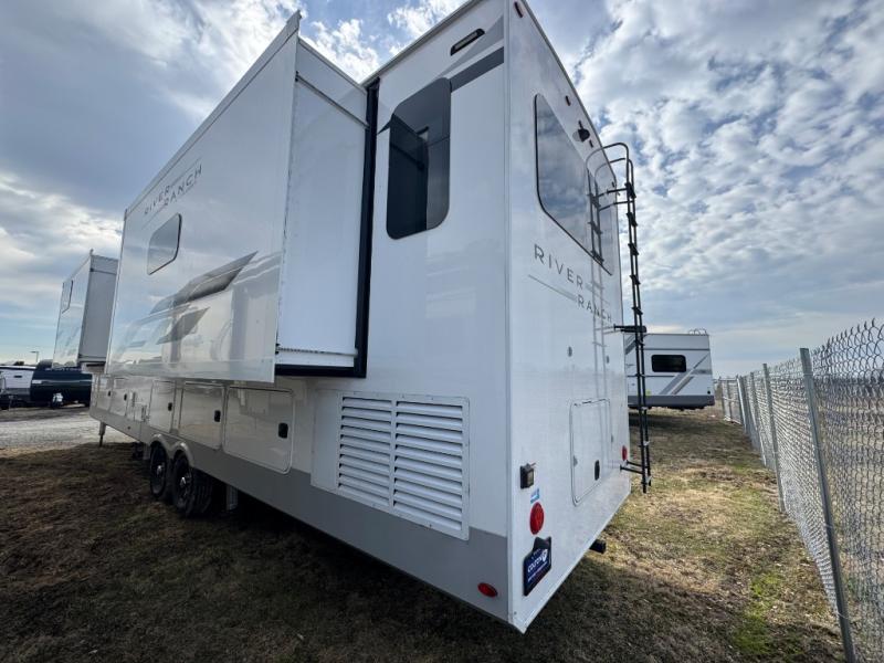 With any River Ranch fifth wheel by Palomino, you will love the practical living, the storage, the tow ability, and the lavish style in each luxury RV! There is a 7' interior height and a 101" wide body for added space, plus frameless windows, worry-free composite floors, and vacuum bonded walls with Azdel for durability. The River Package is a mandatory option you'll love having with features such as, a touch screen control operating system, a MORryde LRE4000 suspension, and three A/C's units with an energy management system. These fifth wheels also include the Ranch Package that comes with a memory foam mattress, stainless steel residential appliance package, MCD day/night roller shades, plus a JBL sound system. There's many more features to love about the River Ranch fifth wheels, like the upgraded true solid surface countertops, the French mirrored sliding closet doors, and the painted fiberglass front cap!