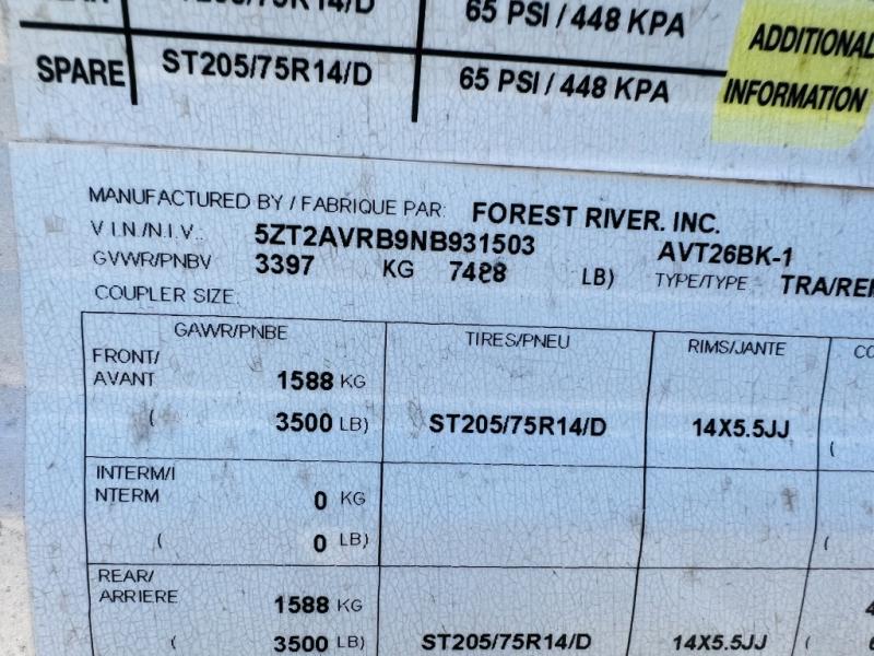 Used 2022 Prime Time RV Avenger 26BK Travel Trailer