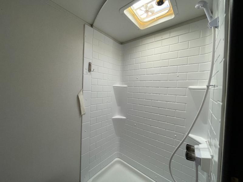 The cook is going to enjoy having choices for every meal, whether to use the full kitchen amenities inside or the outdoor kitchen while visiting with others relaxing under the 13' power awning. With the inclusion of a walk-around queen bed in the front bedroom, plus the sofa and booth dinette in the combined kitchen and living area, and the double-size bunks next to the bathroom sink and private toilet and toilet room, there is plenty of room to sleep eight or nine people each night. And the power awnings plus outdoor speakers give you an additional living area for everyone.