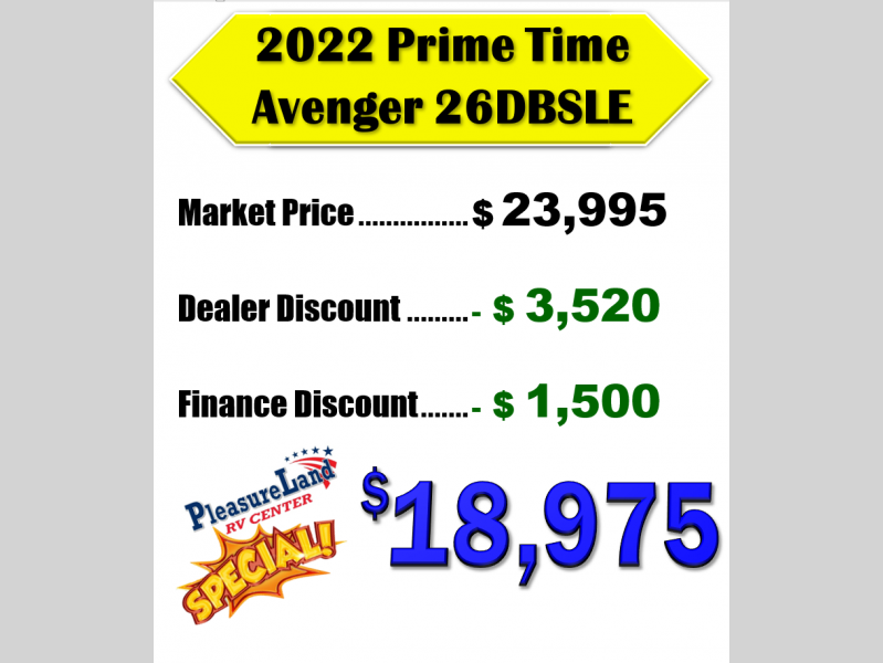 Used 2022 Prime Time RV Avenger 26DBSLE Travel Trailer