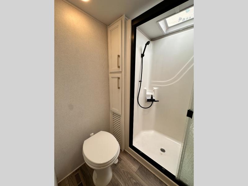 The Crusader fifth wheels by Prime Time RV are a step above the rest and it's not hard to see why. Each model has been constructed to last with its exclusive Eternabond construction, a one-piece TPO roof, and high gloss gel coat fiberglass exterior. The auto leveling system and the central docking center will have you set up to camp in no-time, and there is a convenient bottle opener and Doggy D-ring for your furry companions. You will fall in love with the interior that includes solid surface countertops, premium vinyl flooring, hardwood cabinet doors, and many more residential comforts. The Crusader also comes standard with a 15,000 BTU "Quiet Cool" A/C, a 35,000 BTU high capacity gas furnace, and the Extreme Thermal Package Plus, making your camping season year-around!
