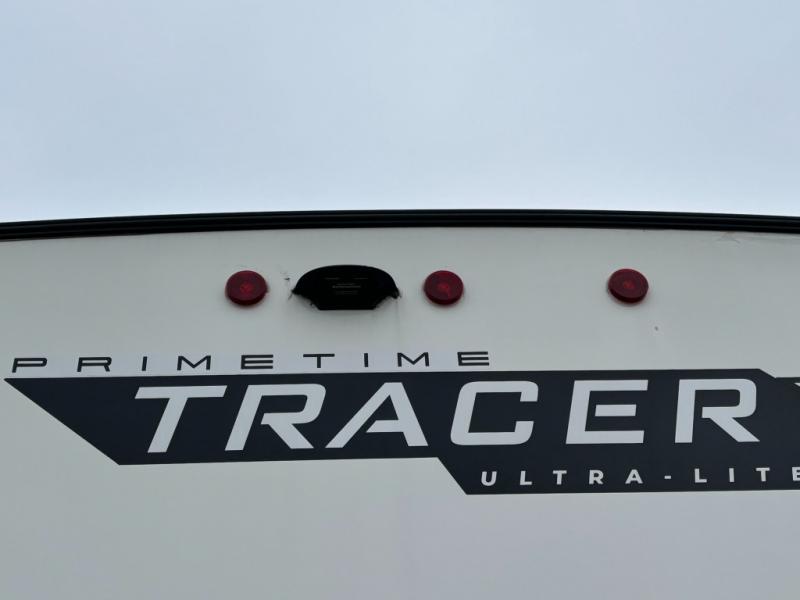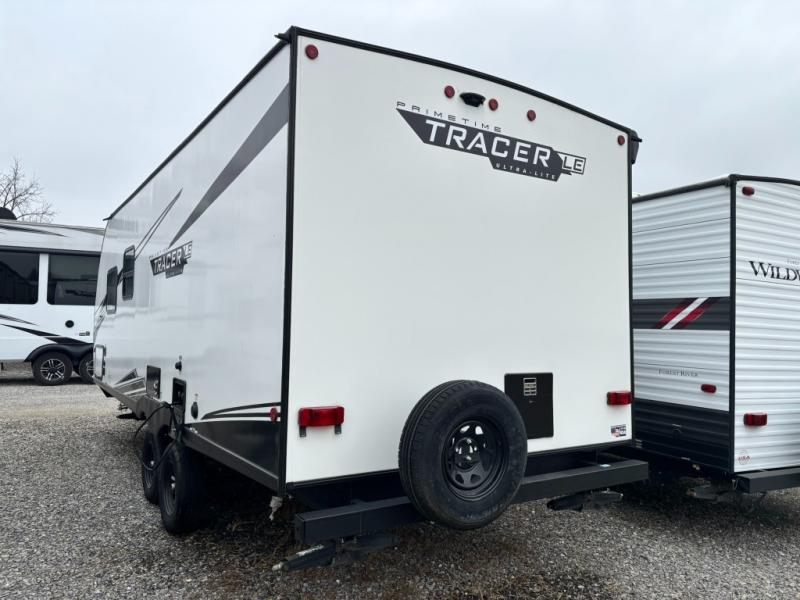 With any Tracer LE travel trailer by Prime Time, you will have Eternabond construction, an enclosed and heated underbelly by radiant and forced air heat to tank compartment for four seasons of travel, a manual tongue jack and stabilizer jacks, plus steel wheels and steel entry steps with an XL grab handle. Inside there is LED lighting, a soundbar, shaker style cabinet doors, and more depending on the trailer you choose!