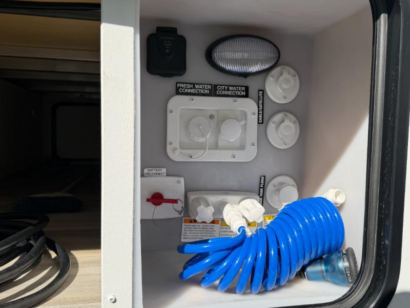 With any Tracer travel trailer by Prime Time, you will have Eternabond construction, a fiberglass front cap, a fully enclosed and heated underbelly by radiant and forced air heat to tank compartment for four seasons of travel, electric stabilizer jacks for easy setup, plus solid stance entry steps and an XL grab handle for a secure entry and exit. Inside there is LED lighting throughout with motion sensor lights in key locations, shaker style cabinet doors, solid surface galley countertops and a stainless steel galley sink, plus more depending on the trailer you choose!