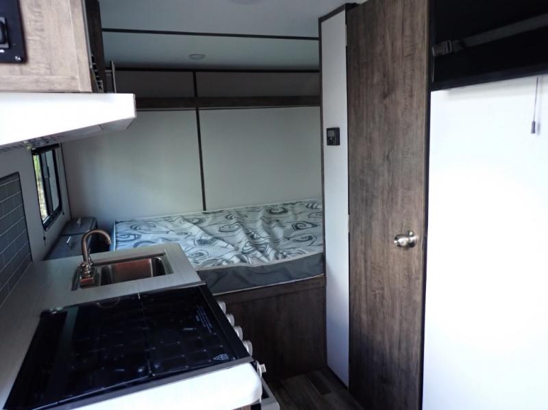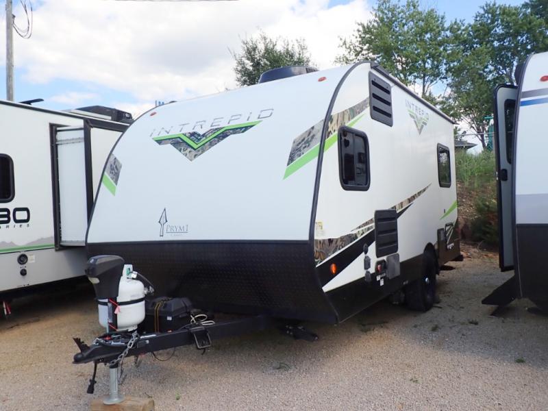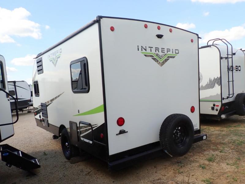 The Riverside Intrepid 165i is a great choice for a couple. Ultra-lite weight, super easy to tow. Sleeps 3. The front dinette will covert into a 6' sleeping area. This model has been upgraded with the Intrepid Outdoor Package. This unit looks amazing with Prym1 Camo graphics and off-road tires.
