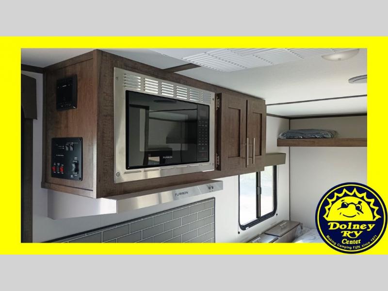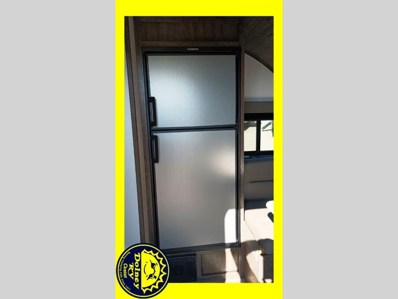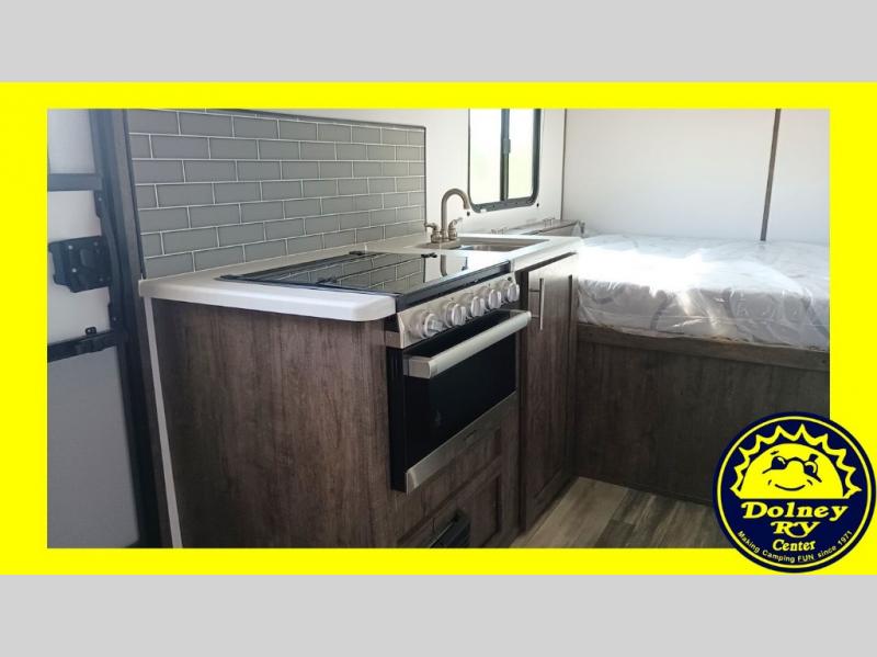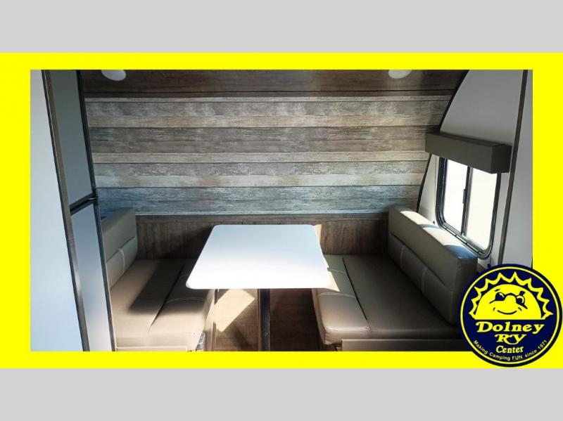 Comfort is found in this single axle travel trailer for three. You can prepare your own meals each day in the kitchen, and dine together at the booth dinette. If you'd rather have a sofa with a table, you can add that option in place of the dinette. There is a private toilet and shower for you to freshen up each day, and the rear 60" x 76" RV queen bed will make you feel right at home. No more sleeping on the floor!