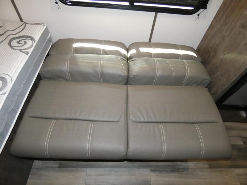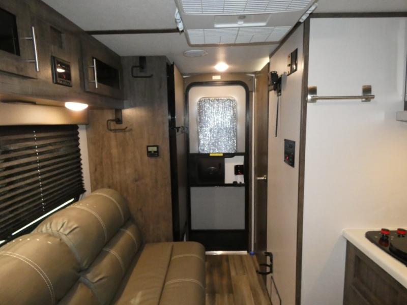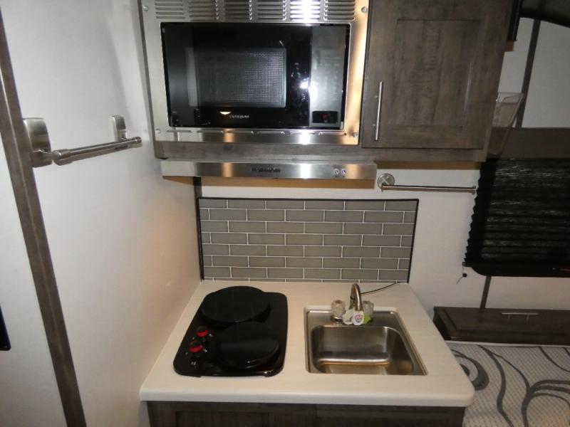 This travel trailer is cozy and to the point! You'll love not having to sleep on a tent floor or air mattress thanks to the front queen bed, and the overhead storage here is sure to come in handy. There is a kitchen base to prepare meals each day, and you can clean up in the convenient shower. This model also includes a sofa, and there is a refrigerator for your perishables!
