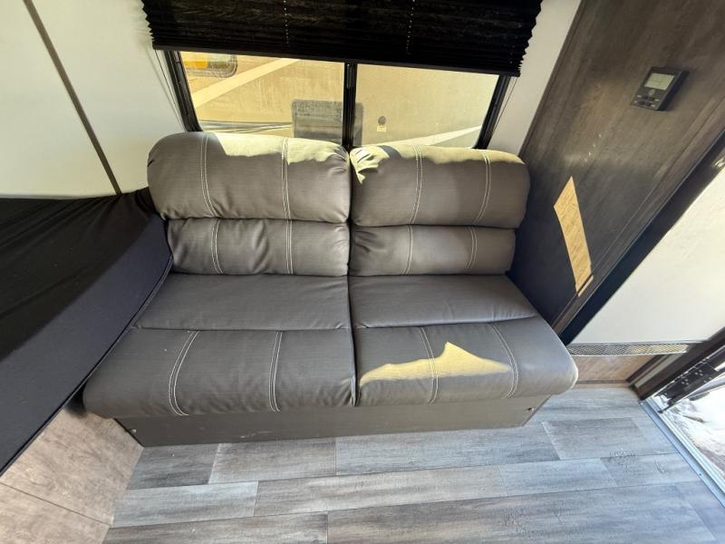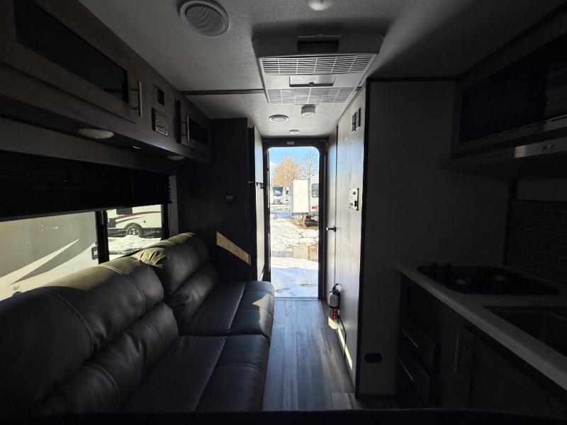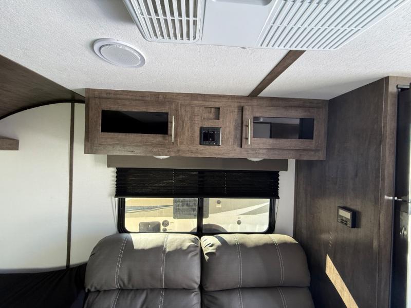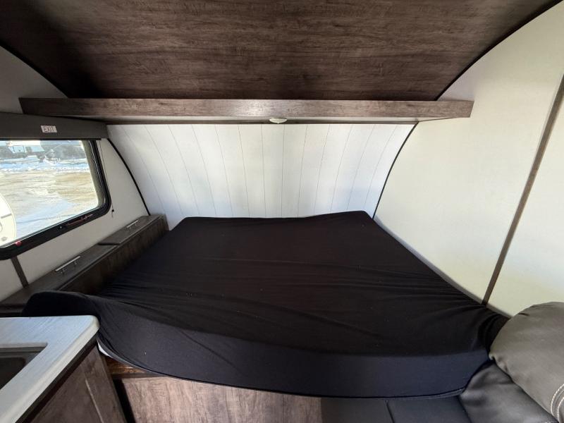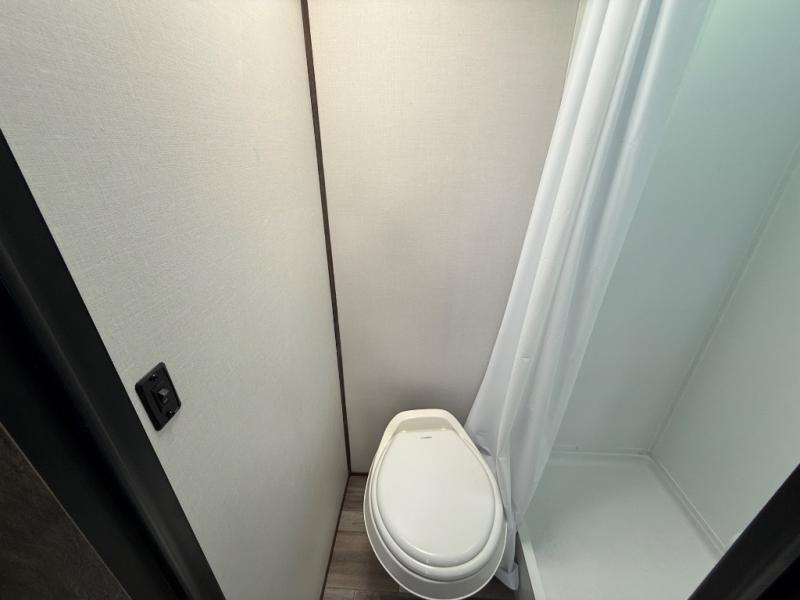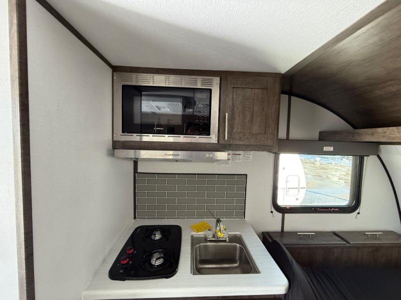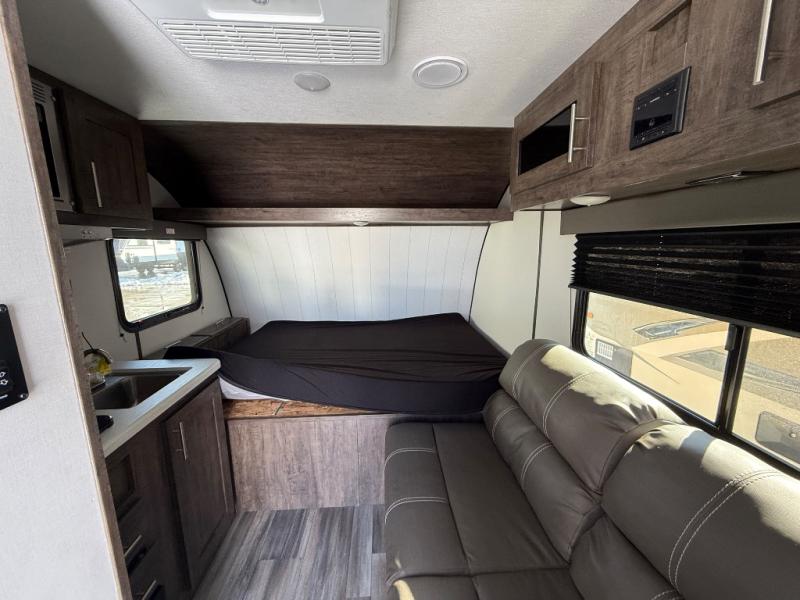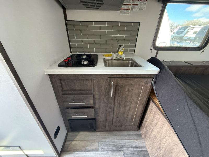 This travel trailer is cozy and to the point! You'll love not having to sleep on a tent floor or air mattress thanks to the front queen bed, and the overhead storage here is sure to come in handy. There is a kitchen base to prepare meals each day, and you can clean up in the convenient shower. This model also includes a sofa, or you can choose the optional booth dinette, and there is a refrigerator for your perishables!
