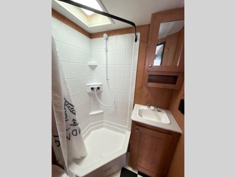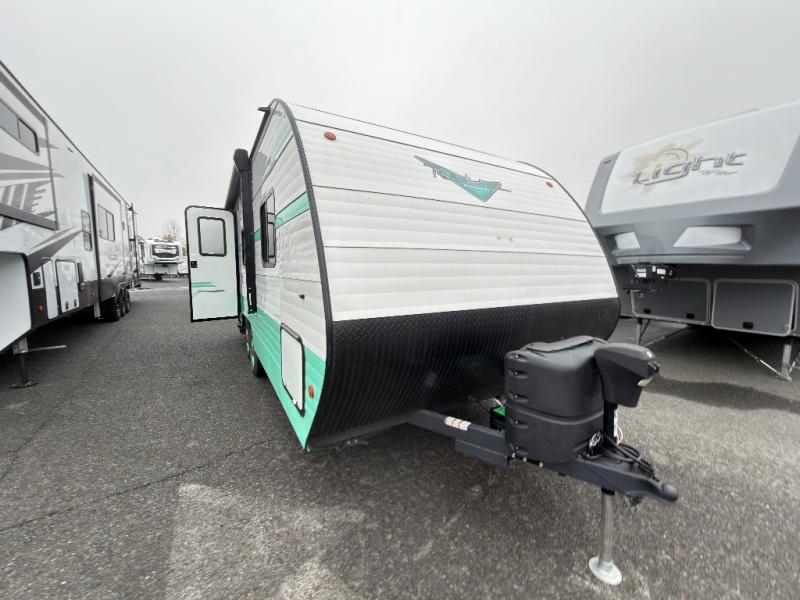 Start camping the best way with this travel trailer! As you enter the unit, you will notice the rear corner bathroom which has a radius shower to freshen up in each morning. Eat meals, play games, and even sleep on the booth dinette with an entertainment center next to it for your enjoyment. The fully equipped kitchen not only has a refrigerator, but also a four burner cooktop so you can cook more things at once. When you're ready to get a good night's rest, head to the front 60" x 76" queen bed with overhead cabinets to store your books or other necessities!